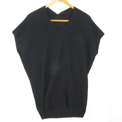 アースミュージック&エコロジー EARTH MUSIC & ECOLOGY フレンチスリーブ ニット カットソー Vネック F ブラック kz11000 レディース
