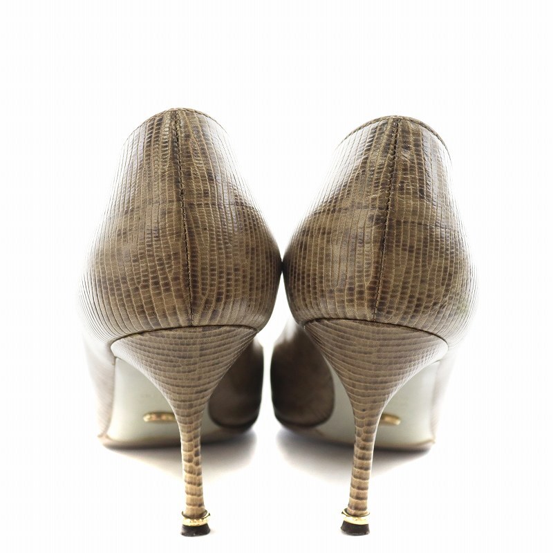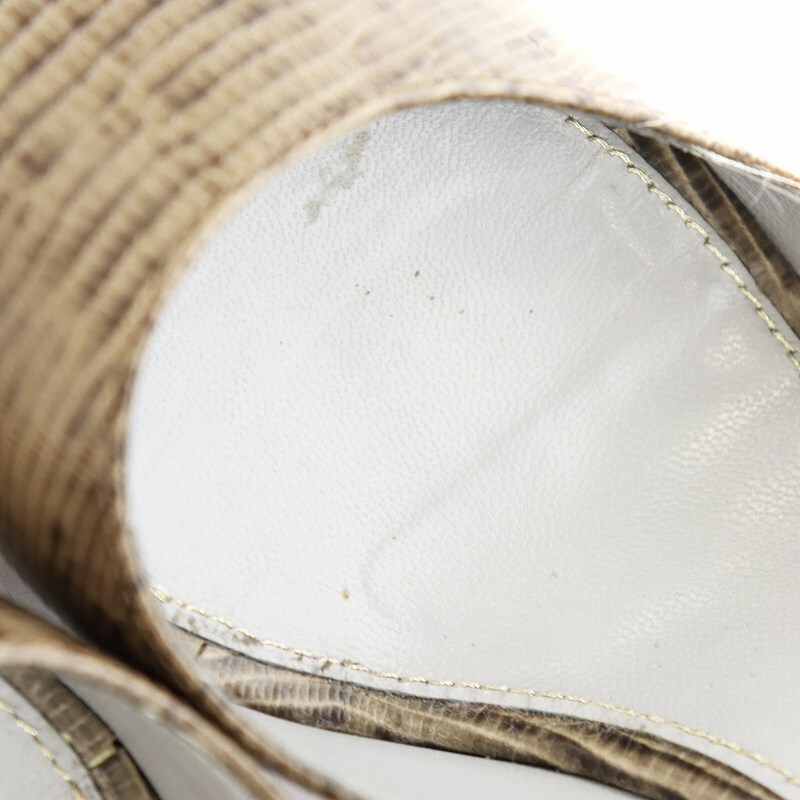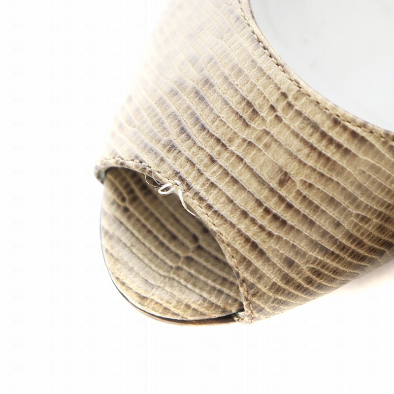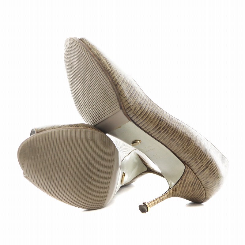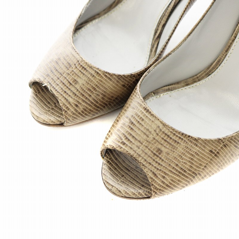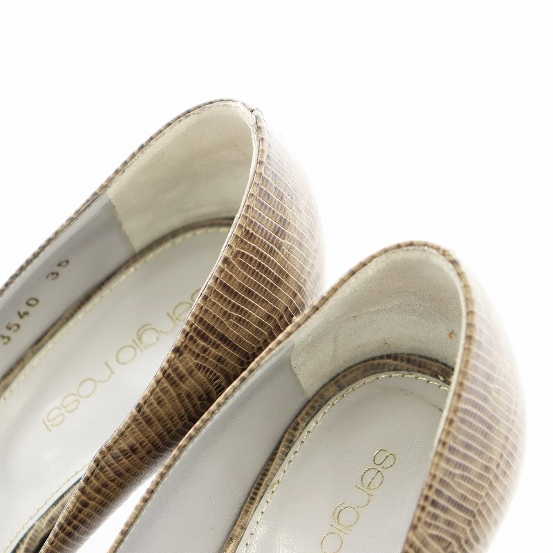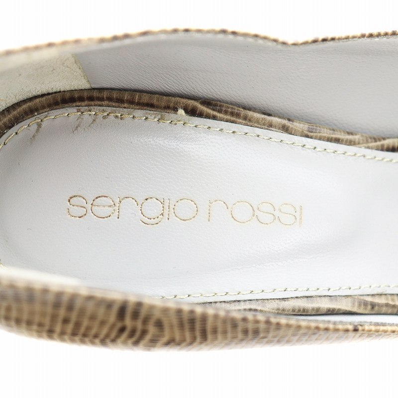 セルジオロッシ Sergio rossi パンプス ヒール オープントゥ パイソン型押し レザー 35 ベージュ 3540 /AN7 ■OF レディース