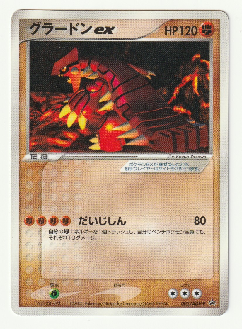 ポケモンカードADVプロモ「グラードンex」(002/ADV-P)コーティング加工・美品・「月刊コロコロコミック2003年2月号」付属