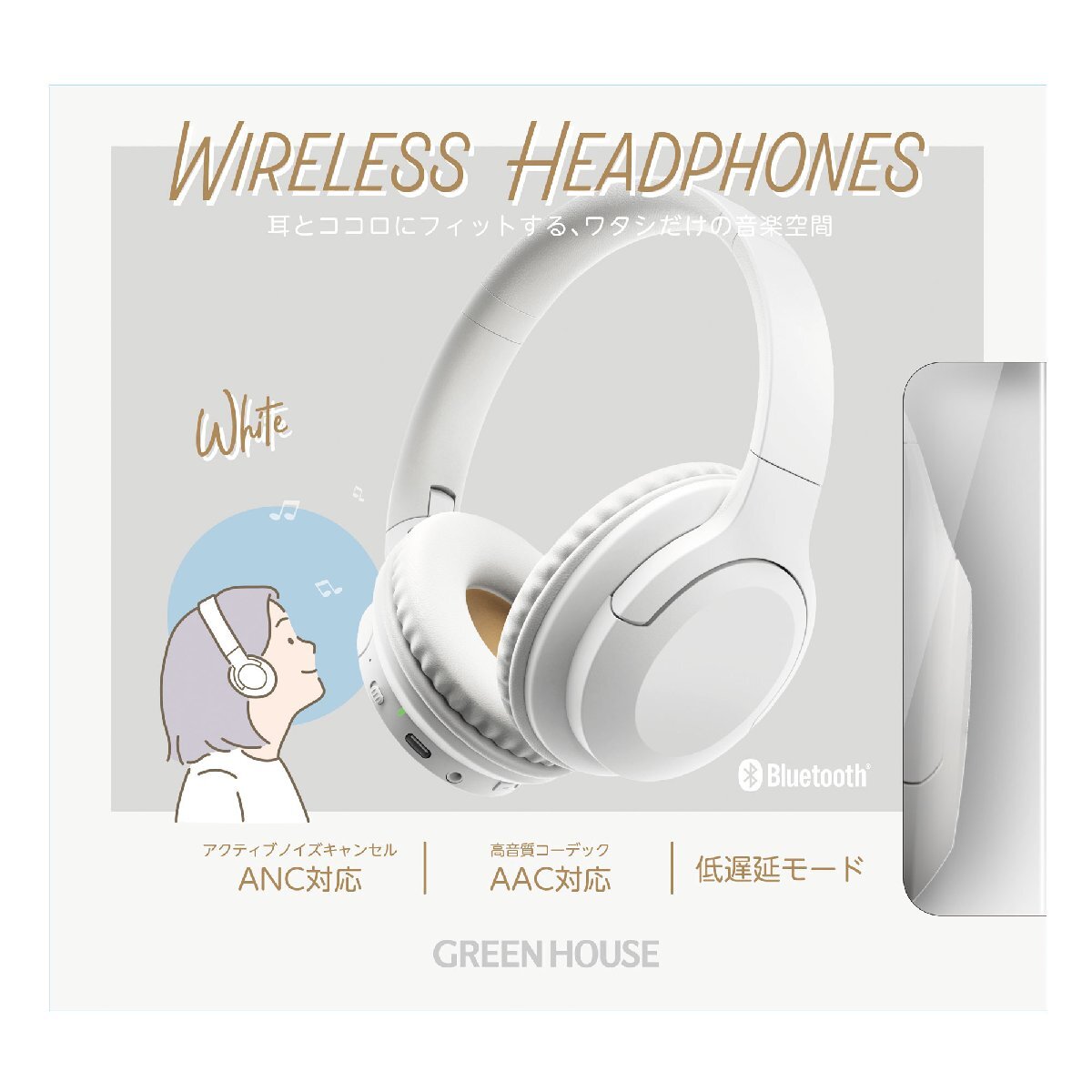 ワイヤレスヘッドホン ブルートゥース グリーンハウス GH-HPBC-WH/9369 ホワイトx1台 ノイズキャンセル マイク付き