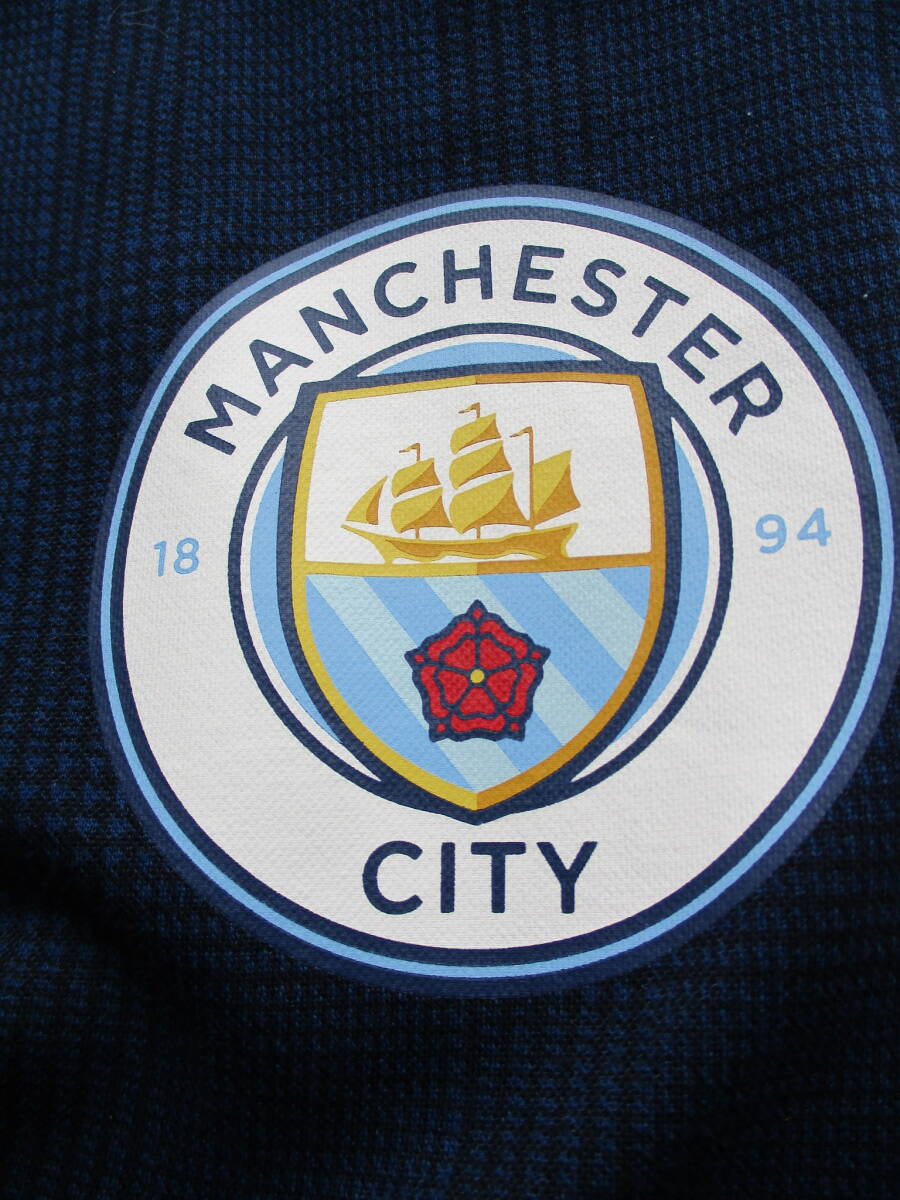オフイシャル・ライセンス品、世界最高峰のビッグ・クラブ、マンチェスター・シティーFCのスタイリッシュなユニフォームでLサイズの表記“