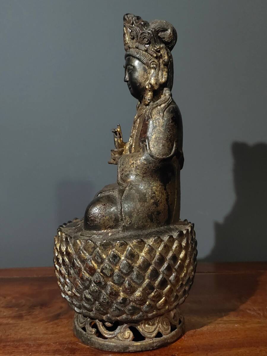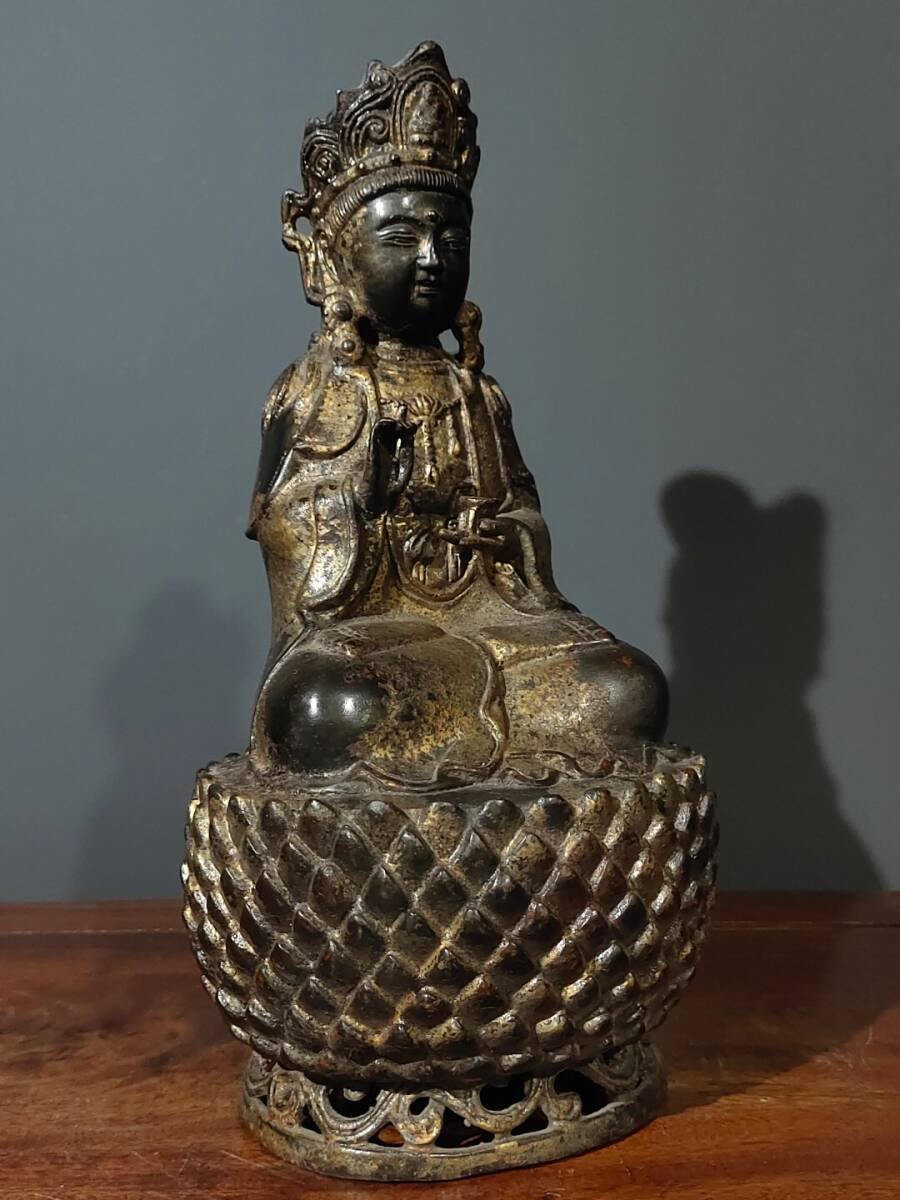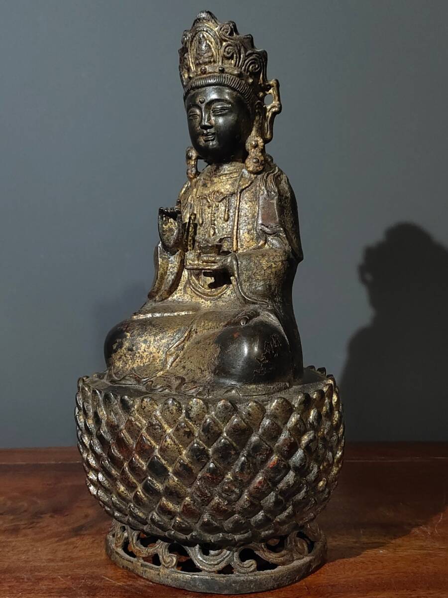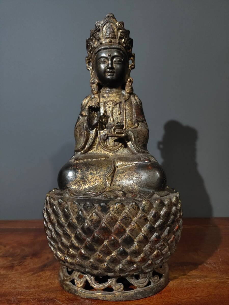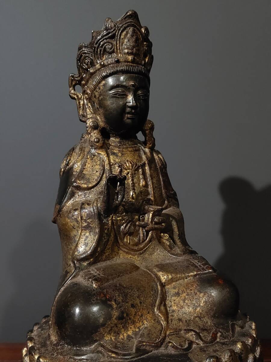 【超珍館蔵】銅製 泥金 無量寿仏 置物 古賞物 古美術品 稀少珍蔵品
