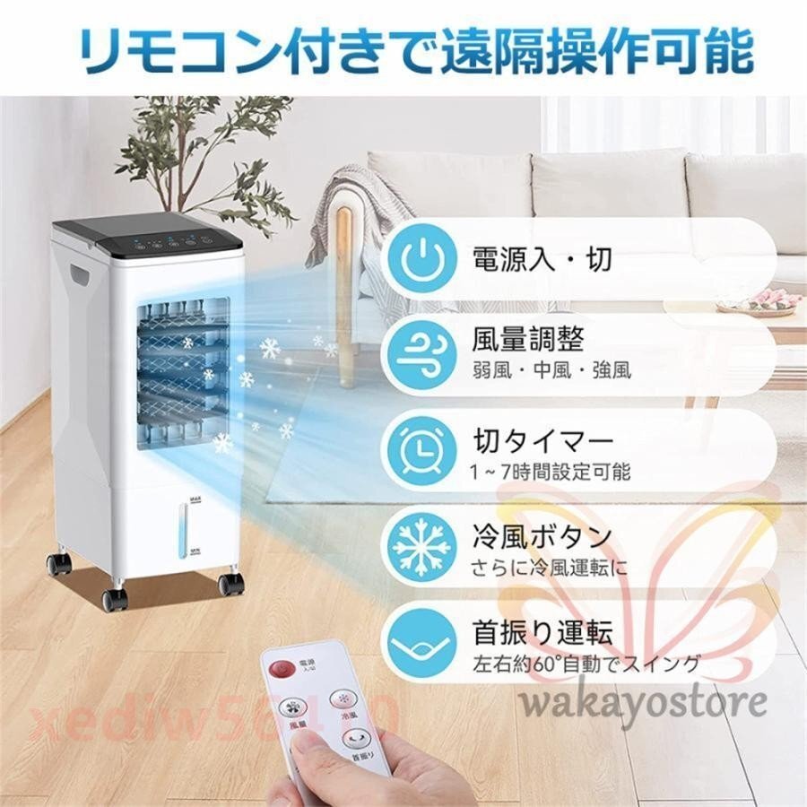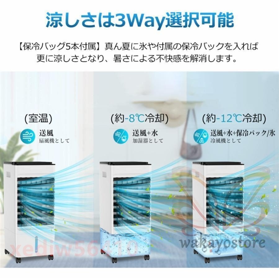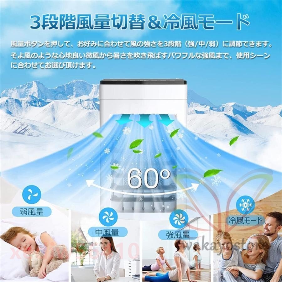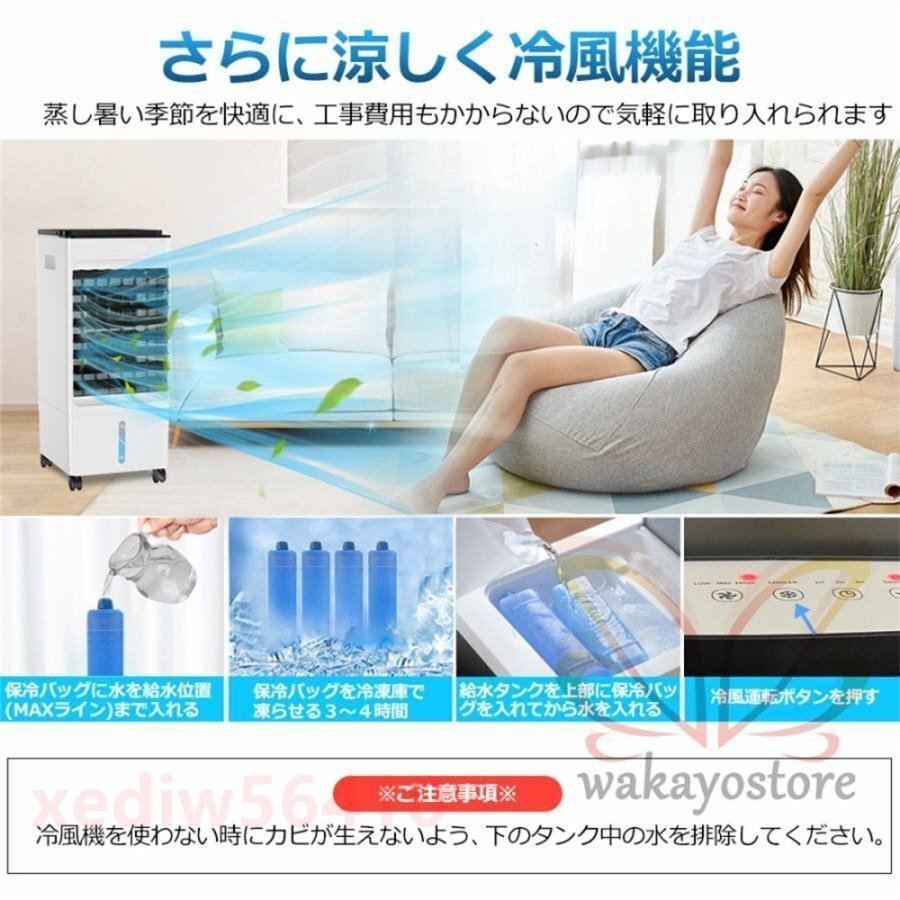 風扇 冷風機 リビング 羽なし 一台四役 小型 おしゃれ 保冷剤5個付 静音 10L大容量 首振り衣類乾燥
