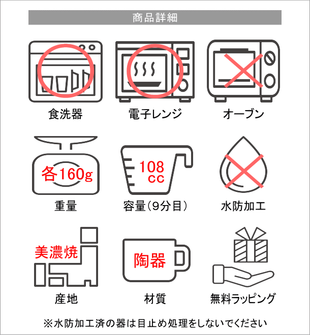 | 五客とも色々な柄ですが 全体のトーンが同じで とても可愛いカップです おもてなしの食後のコーヒーやお茶に 持ちやすく飲みやすい形もGOOD 化粧箱入り(5個一組)で、贈り物にも最適です 商品名 : ミニカップ5個セット 商品番号 : kyt3614 サイズ(cm) : 口径7×高さ7.5 容量 : 120cc 材質 : 陶器 使用方法 : 電子レンジ)〇 食洗機)〇 オーブン)× 生産国 : 日本 美濃焼き ※工業製品と違い、陶器(土物)は釉薬を陶土にかけて 焼いてあり、一つ一つ僅かな色の違いがあります。釉薬の細かいひびや垂れは陶器の手作りの味として、予めご了承ください |