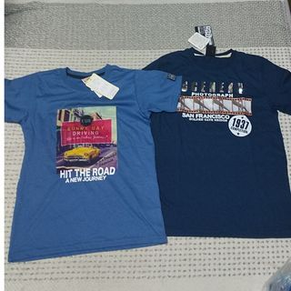 ① タグ付き 半袖 150 2枚セット 青 紺色 くるま柄 ブリッジ柄 未使用 FUNNYSTORY  RBO