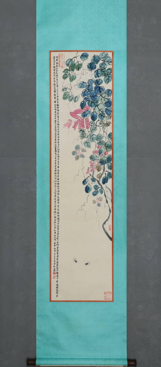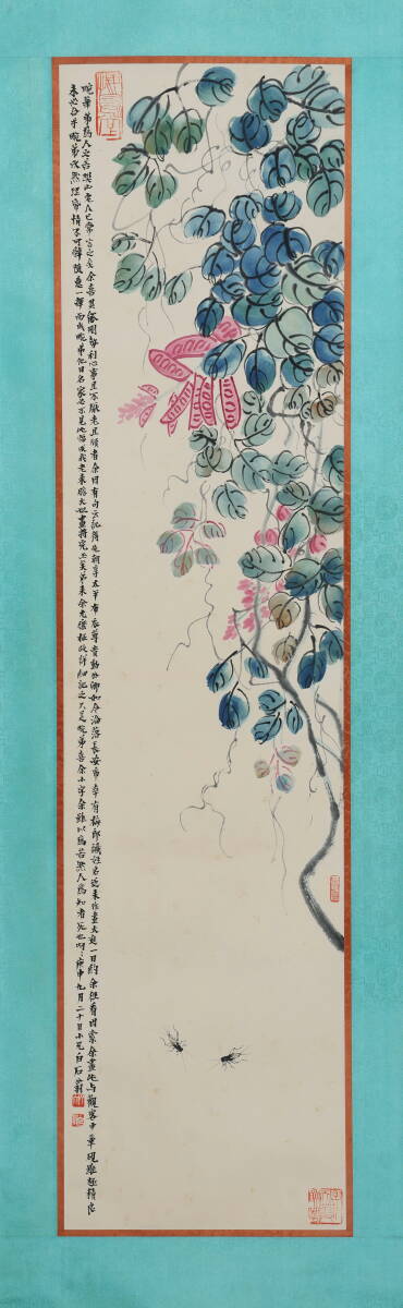 中国書画 掛け軸 中国・近現代 斉白石書「紫藤豆莢図立軸」紙本立軸 書道巻物 真筆逸品 肉筆保証 唐物 古画 LOT-N6707 | |||