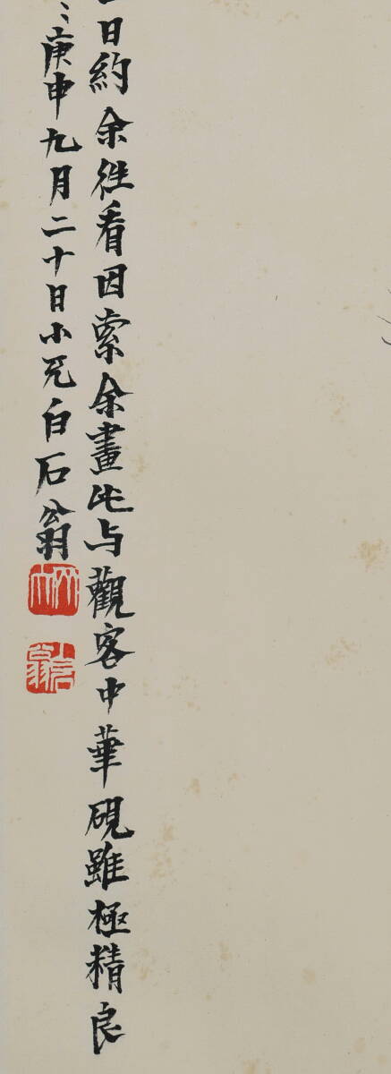 作家:斉白石 時期:近現代 寸法:画心部138x35CM 形製:紙本設色立軸 状態説明:精装は古く表装されていて、品相がよい,保存は完全である。具体的な保存状態は写真を見てください。 掲載写真をご確認ください。 ※モニターの具合により実際の色と異なる場合がございます。ご了承ください。 | |||