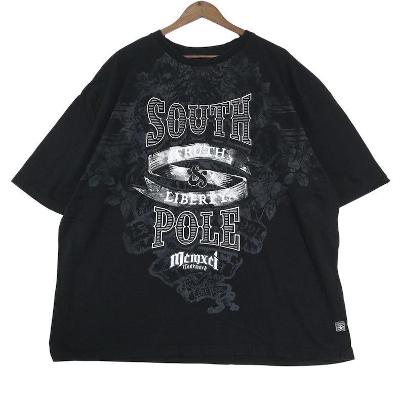 SOUTH POLE 半袖プリントTシャツ プリント柄 メンズUS-4XBサイズ 古着 ブラック系 tc-0098n