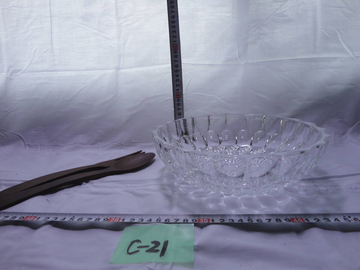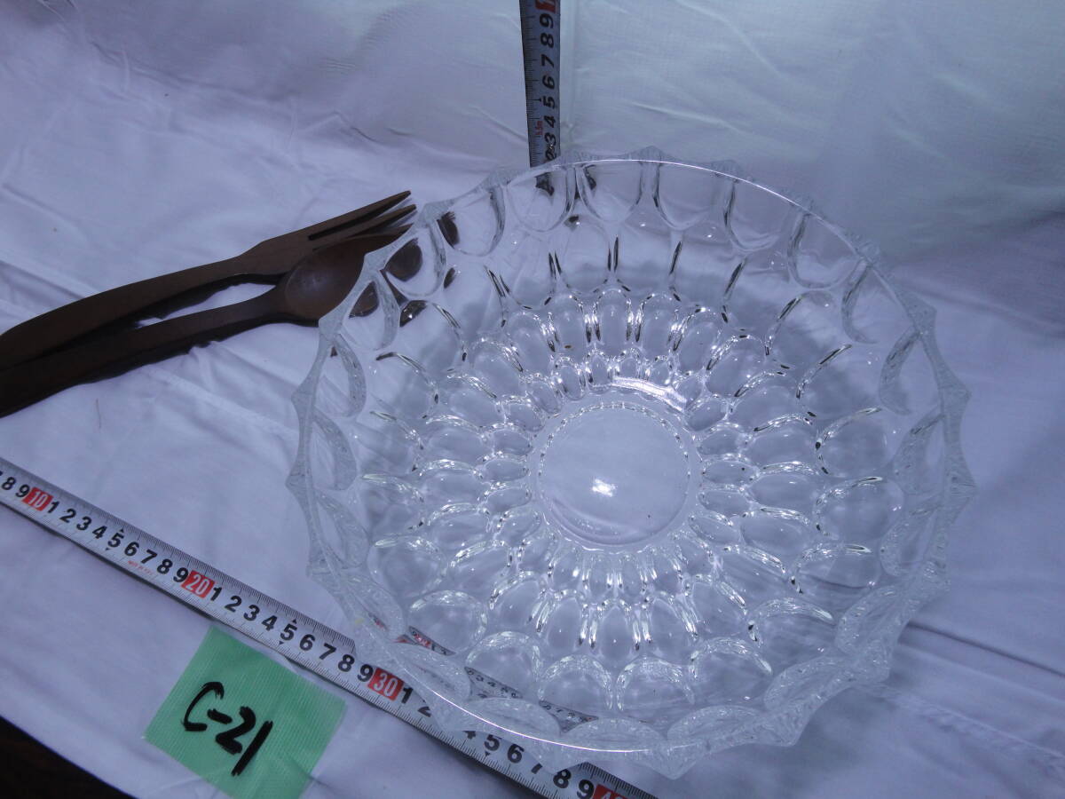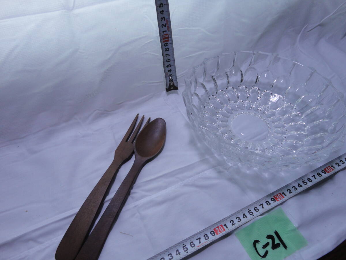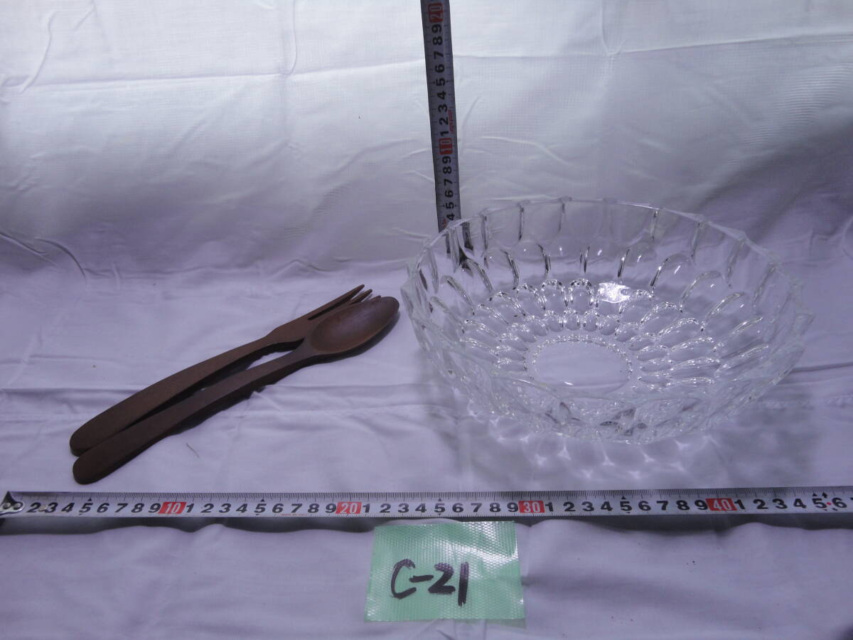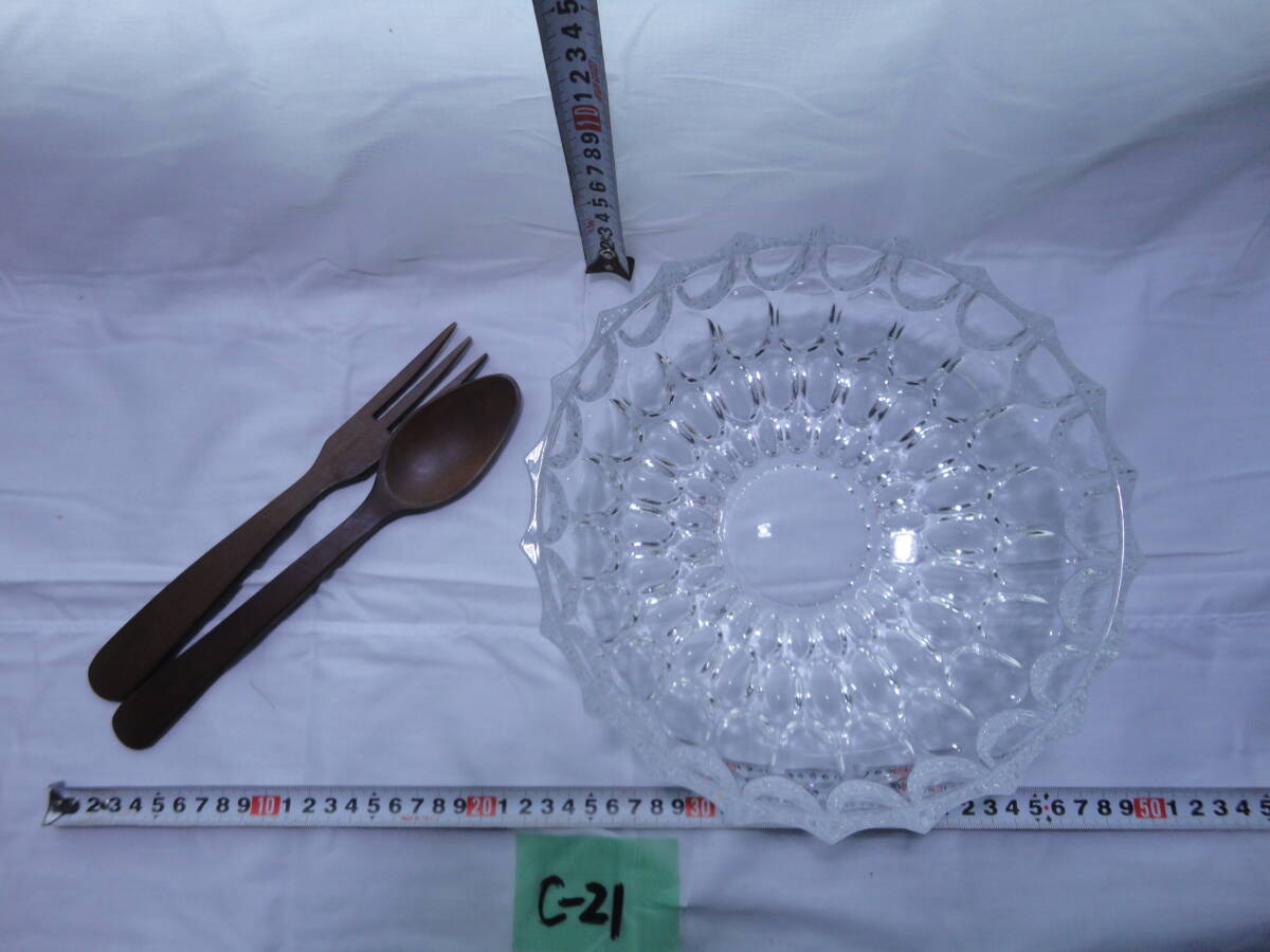 管理番号:C21-8 保谷クリスタル サラダボウル 木製スプーン、フォーク付き 食器セット