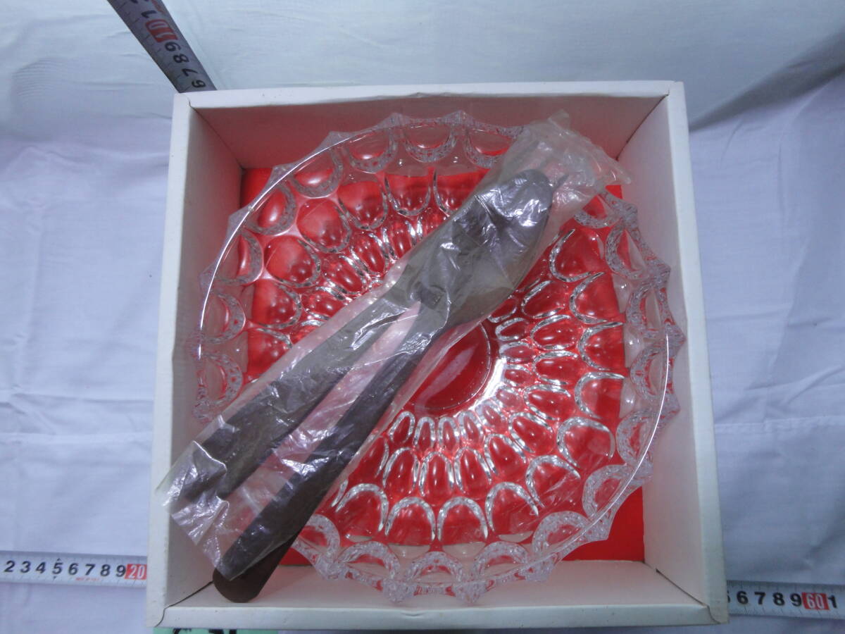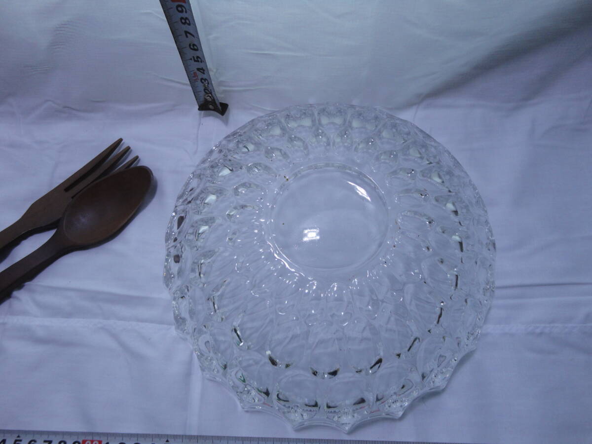 商品名:管理番号:C21-8 保谷クリスタル サラダボウル 木製スプーン、フォーク付き 食器セット