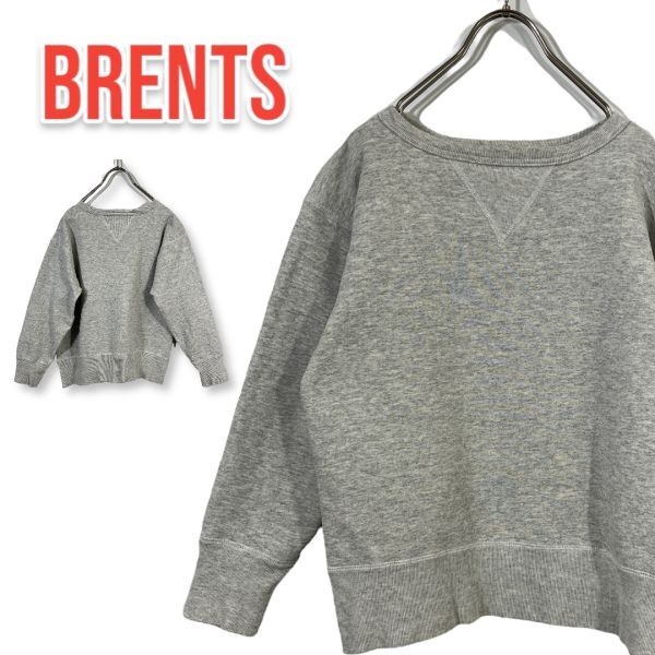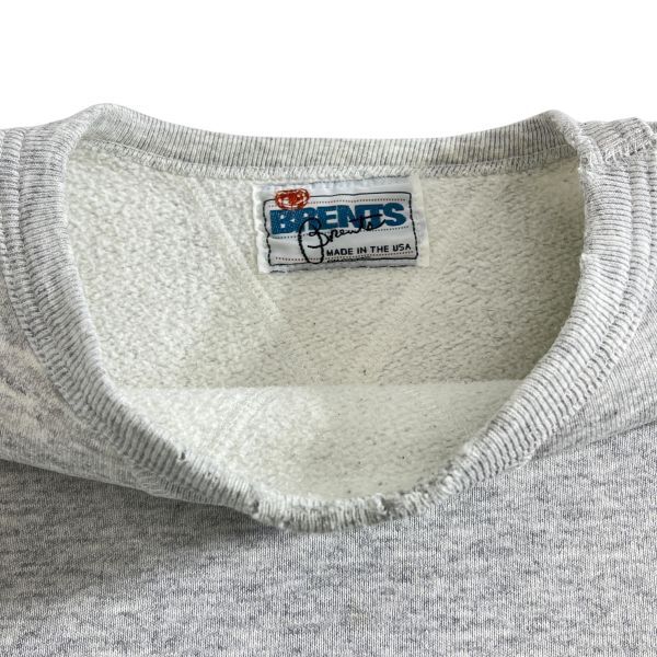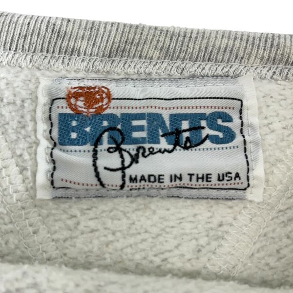 USA製 90s BRENTS 両Vガゼット 長リブ ヴィンテージデザイン スウェット トレーナー グレー ダメージ加工