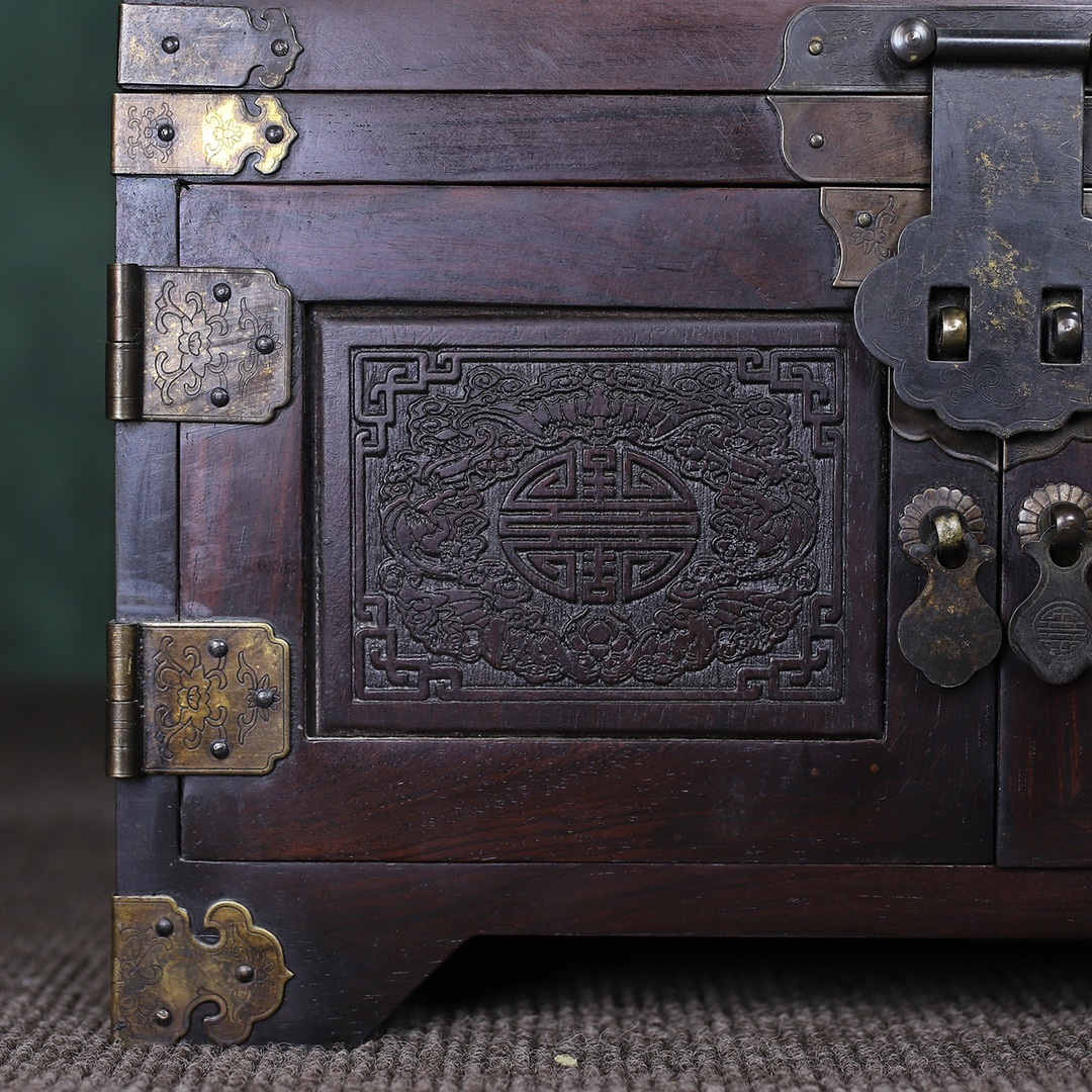 *珍品旧蔵* 清 花梨木滿工彫刻梳妝盒 骨董品 時代物 擺件 置物 賞物 唐物 古美術品 中国古玩 Zk0321