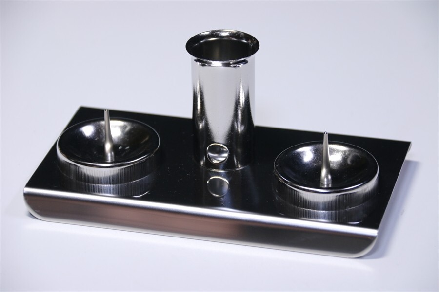 | 墓前に供えるローソク立てとお線香立てがステンレス製でひとつに。 | |||