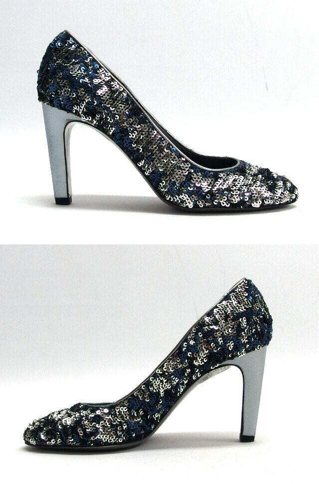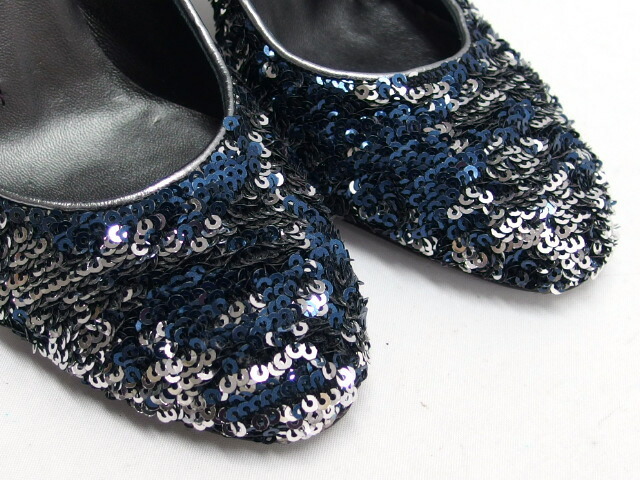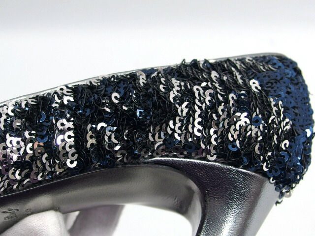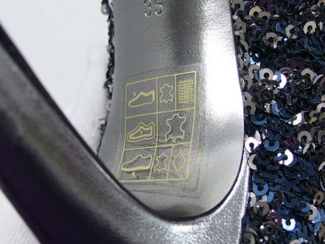 | 商品名 | スパンコール ハイヒール パンプス ネイビー(紺) ファブリック レザー シルバーカラー(銀色) ピンヒール サイズ35 約22cm レディース |