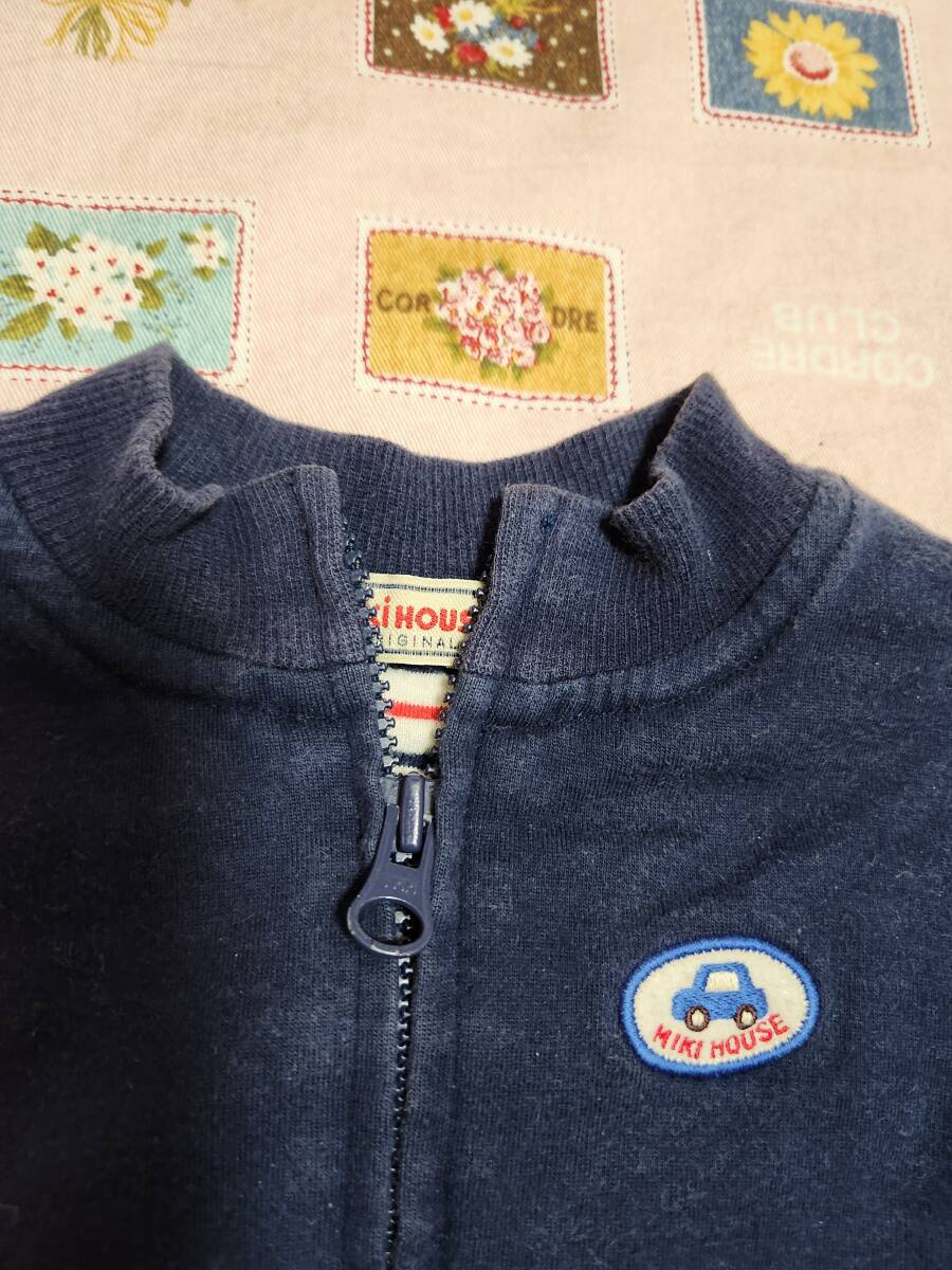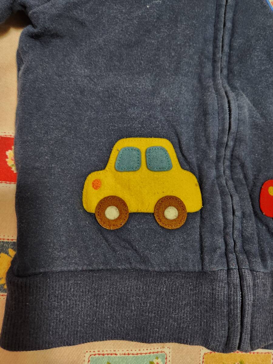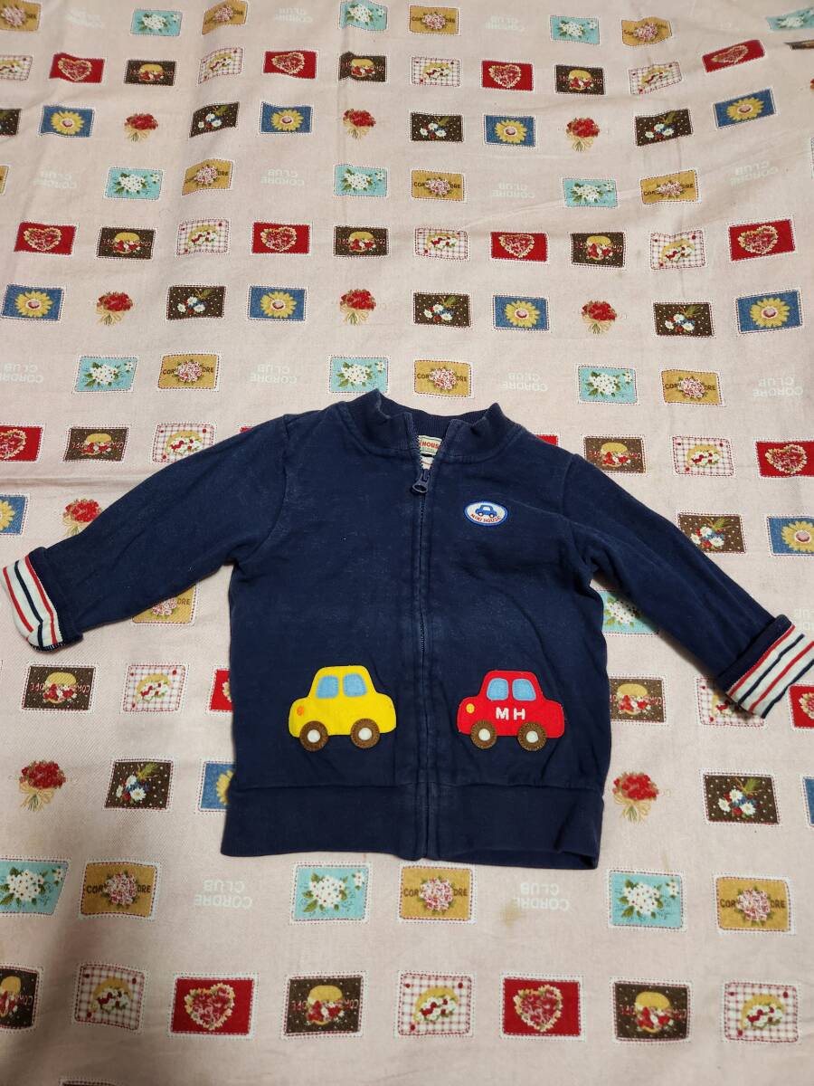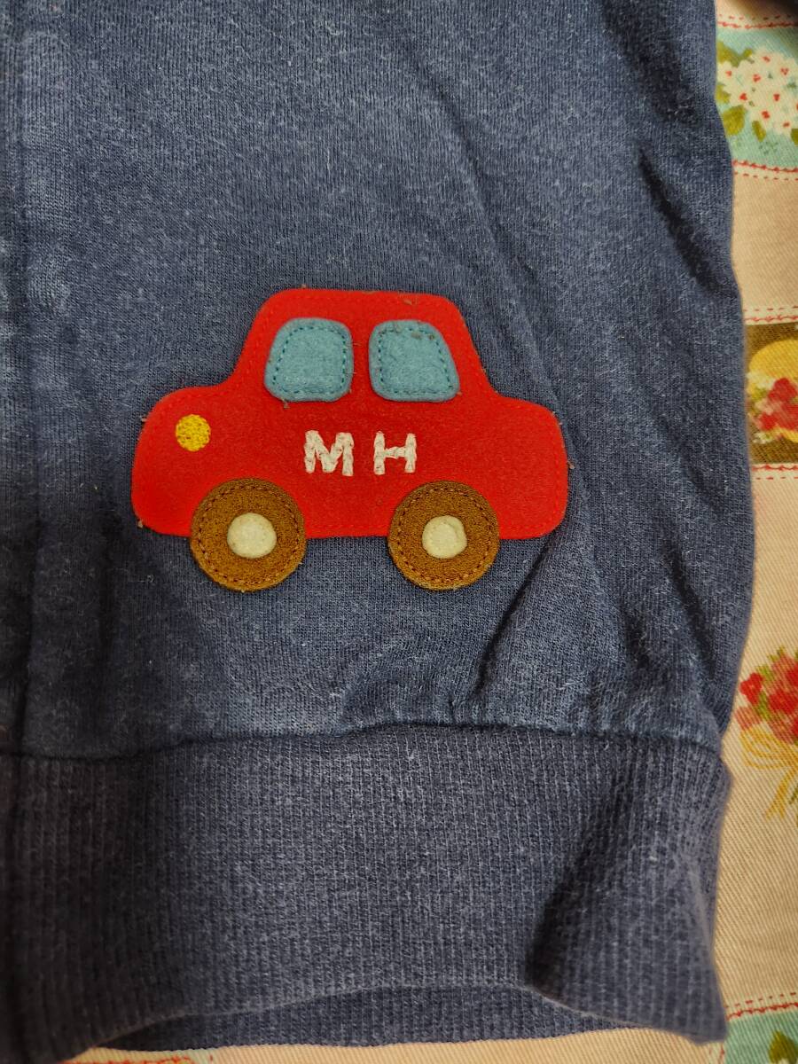 2★ミキハウス(MH)オリジナル★車・ロゴの刺繍が可愛らしい前開き薄手トレーナー★80