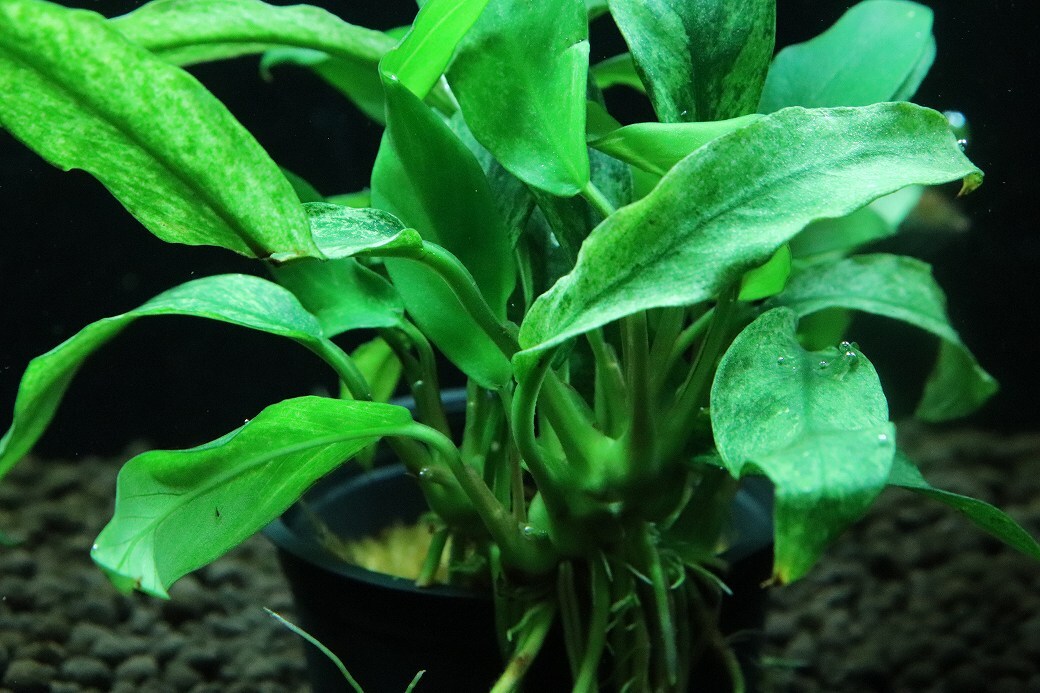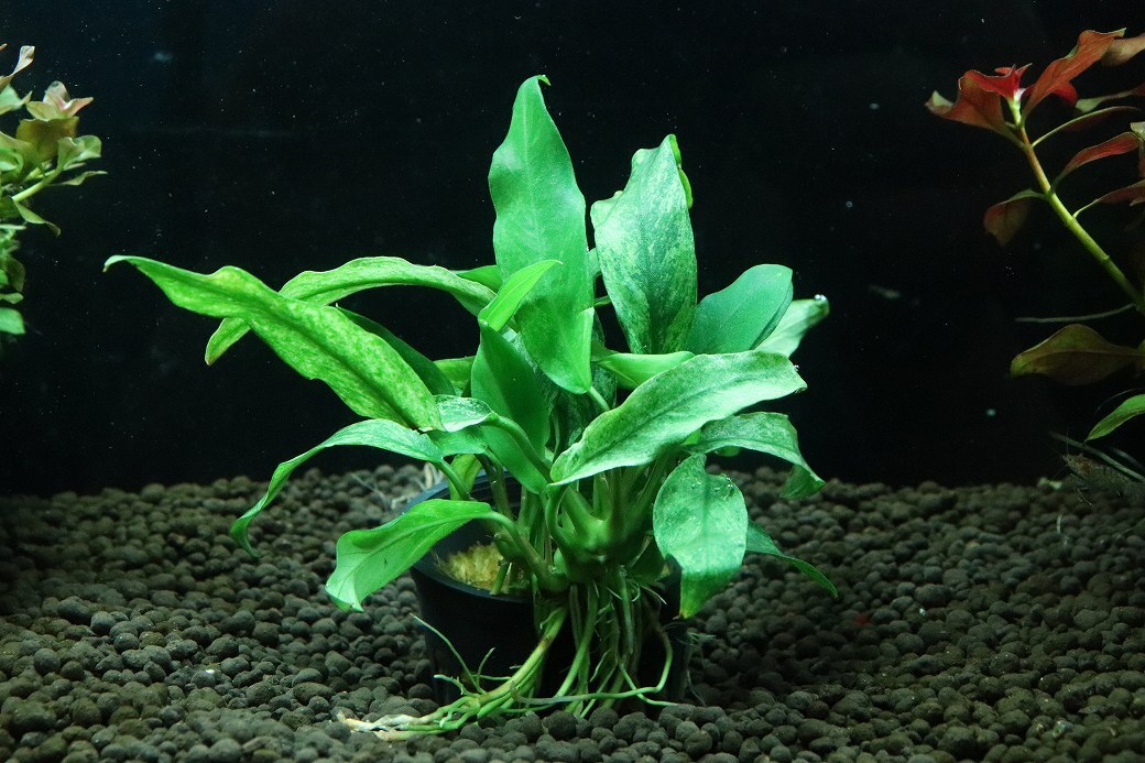 【通販 水草】アヌビアス バルテリー VAR グラブル 斑入り(輸入品)【1ポット サンプル画像】(陰性水草)