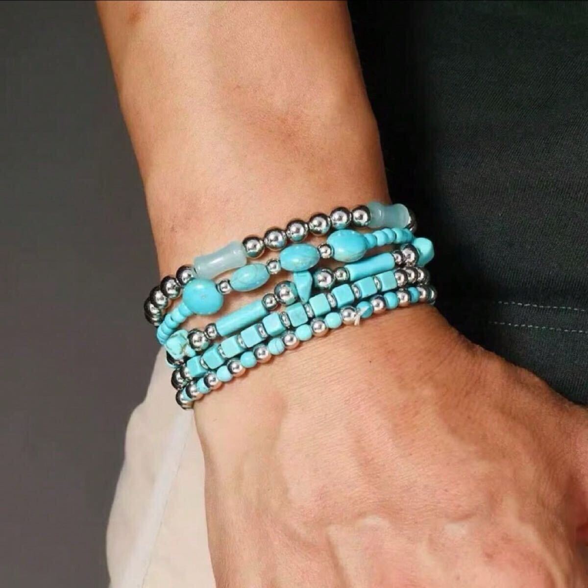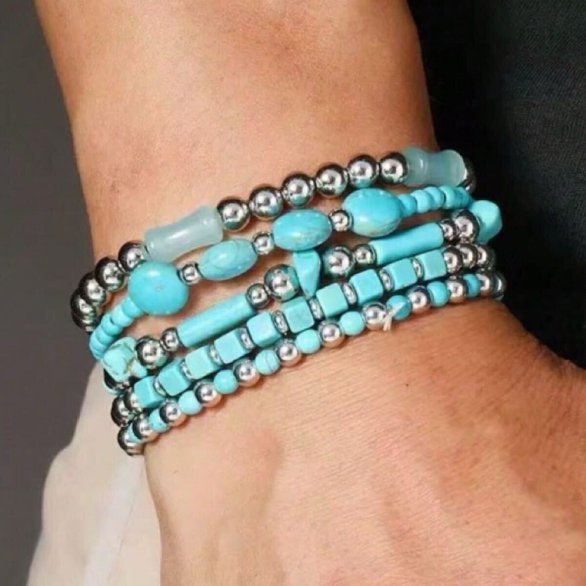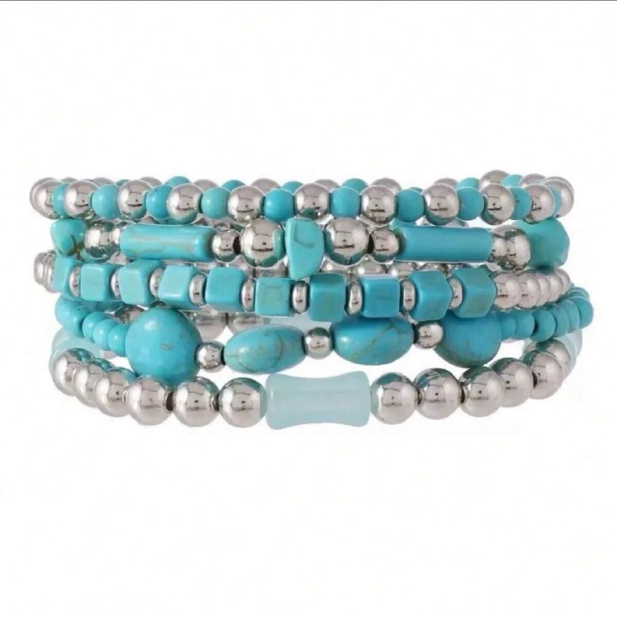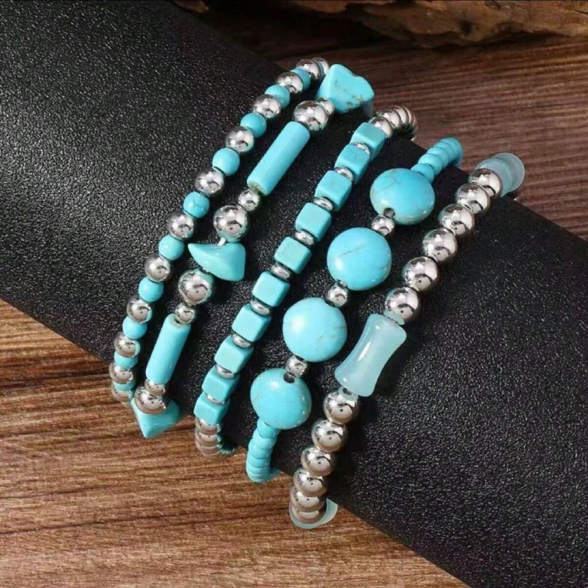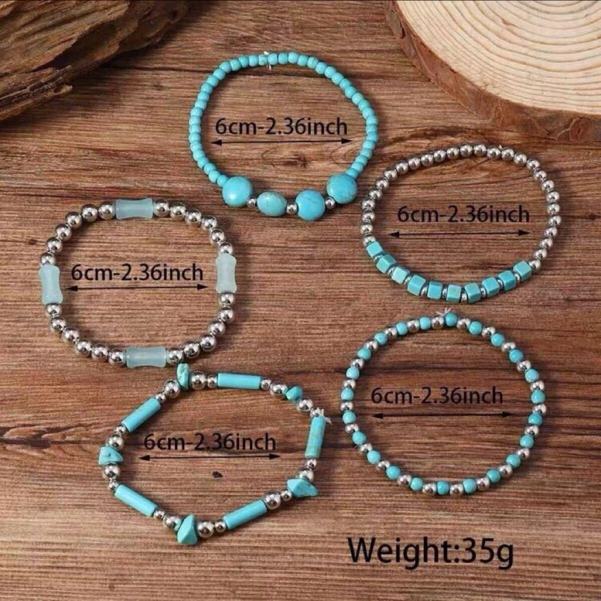 ヴィンテージ風 フェイク ターコイズ トルコ石 ナバホ ナバホパール風 ブレスレット 5個セット インディアンジュエリー