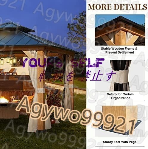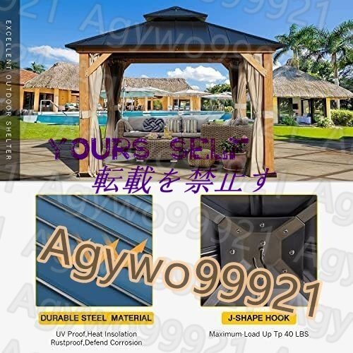 あなたのより良いアウトドアレジャータイムを発見するためのハードトップウッドガゼボ! これはあなたの中庭の小さな変化であるだけでなく、あなたのライフスタイルの大きな革命でもあります!特徴:モダンなミニマルなデザインジッパー式メッシュネット天然杉の木枠頑丈なスチール屋根PU層防水周辺布仕様色:天然木目フレーム材質:杉の木枠、プラスチック溶射鋼トップ全体の寸法:11'L x 11' W x 9.65'Hエッジの高さ:6.8 '組み立てが必要です。 5?6人で5時間パッケージに含まれるもの:杉の木枠×1セットプラスチックスプレースチールトップx1セットネット×4本プライバシーカーテン×4枚ハードウェア×1セットマニュアル×1個