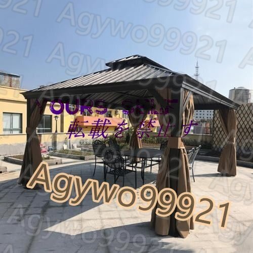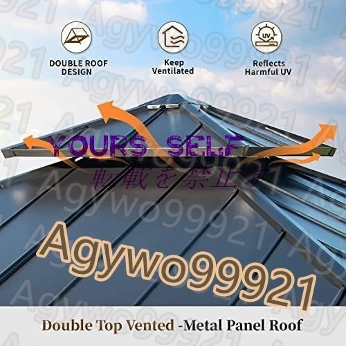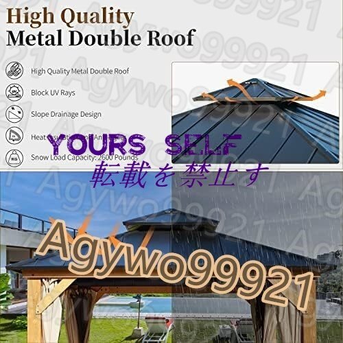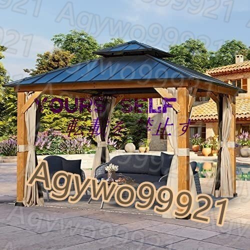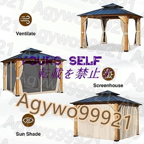 WJW パーゴラ、ガーデンガゼボ、ハードトップガゼボ亜鉛メッキ鋼屋外ガゼボキャノピーダブルベントルーフパーゴラアルミニウムフレーム、ネットとカーテン付き 3.65m*3.65m