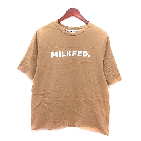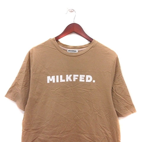 ミルクフェド MILKFED. Tシャツ カットソー オーバーサイズ クルーネック プリント 五分袖 ONE ベージュ 白 ホワイト /MS レディース