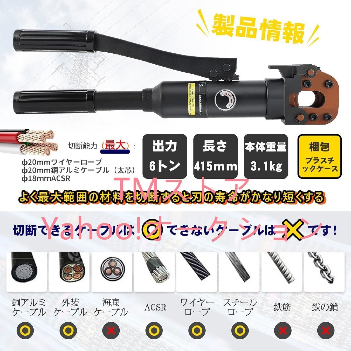 品質保証★ケーブルカッター油圧Φ20mm太物ワイヤー切断機 銅線やアルミ線/ACSR切断