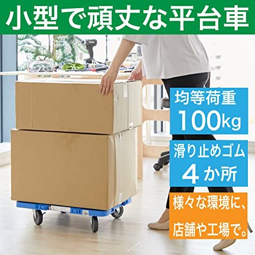 「トラスコ中山(TRUSCO) 平台車 軽量 ルトバンメッシュタイプ 370×500荷重100kg 連結・スタッキング可能 4輪 オル自在 ス」▼4989999489200▼(商品説明)4輪自在 ストッパ付ブル/515×385/MPK-500JS-B・Color:ブルSize:515×385Style:4輪自在 ストッパ付PatternName:単品・パッケジ個数:1・均等荷重(kg):100 色:ブル 長さ(mm):515 幅(mm):385 高さ(mm):115 キャスタ径(mm):75 適合ストッパ:-・完成品 キャスタ取り付け方法:ボルトレス仕様 自在キャスタ2個、自在ストッパ付キャスタ2個 平台車 取り替えキャスタ:TYE-75EL(自在)、TYE-75ELS(自在ストッパ付)・荷台:再生ポリプロピレン(PP)再生材100% キャスタ金具:スチル(三価クロムメッキ) ホイル:ポリプロピレン(PP) 車輪:エラストマ樹脂商品紹介 メッシュ構造の採用で、従来品よりさらに軽量で移動が簡単です。 縦・横方向に連結が可能です。(