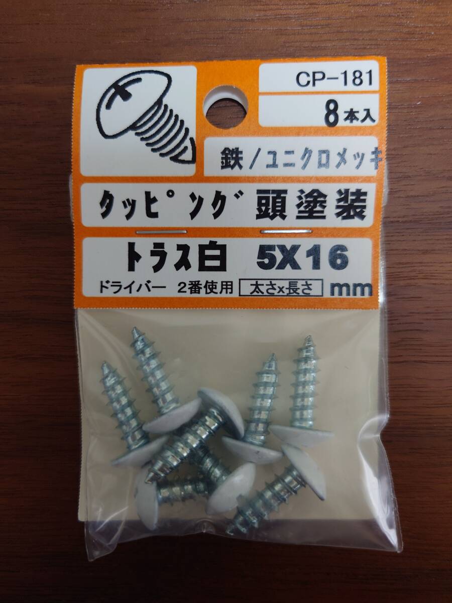 【大里 CP-181 タッピング トラス頭 ねじ 5×16 頭白塗装 8本入】 【状態】 新品 |