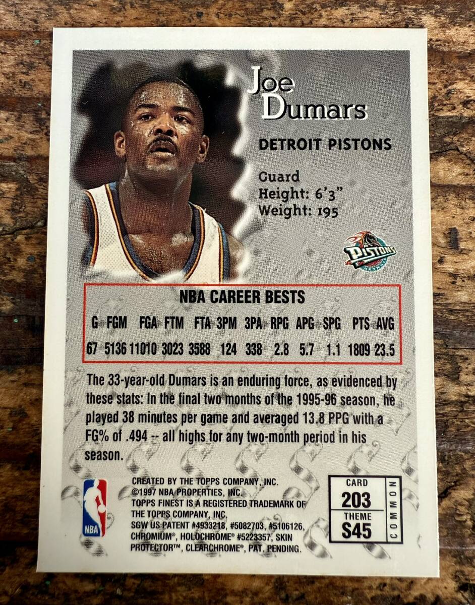 ★1997★TOPPS★FINEST★STERLING★JOE DUMARS★DETROIT PISTONS★ジョーデュマース★ピストンズ★#203★NBA★バスケ★トレカ★スポーツ★