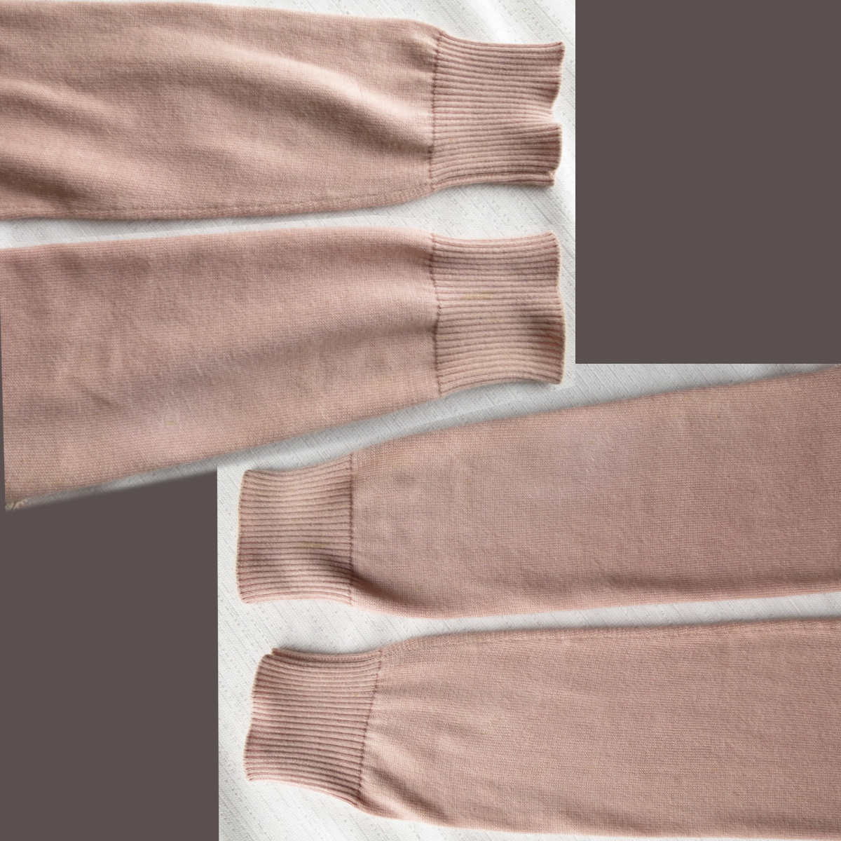親族の購入品です。クリーニング済みです。目立つ汚れはありません。畳み皴があり、腕などにすこし毛羽立ち等がありますが、着用時には気にならない程度のものかと思います。生地は元からくすみ系の色です。