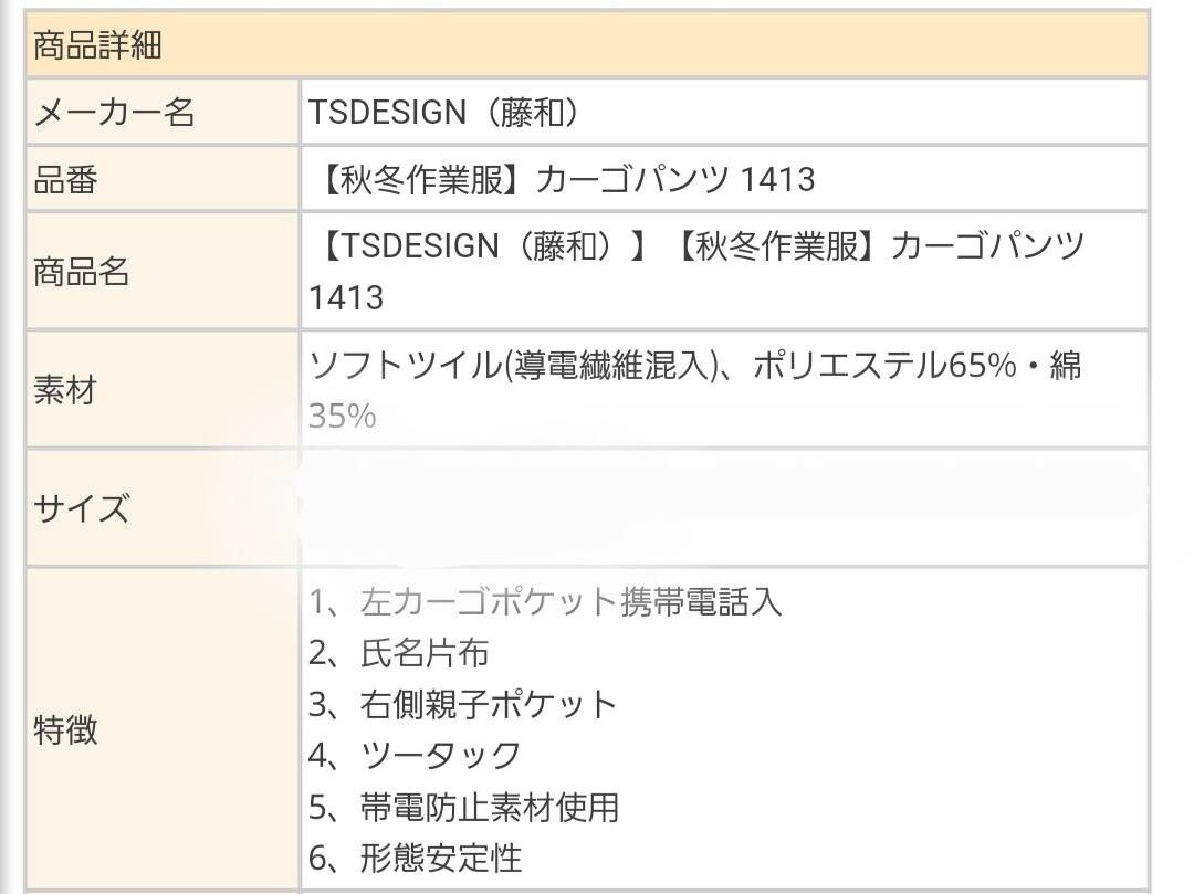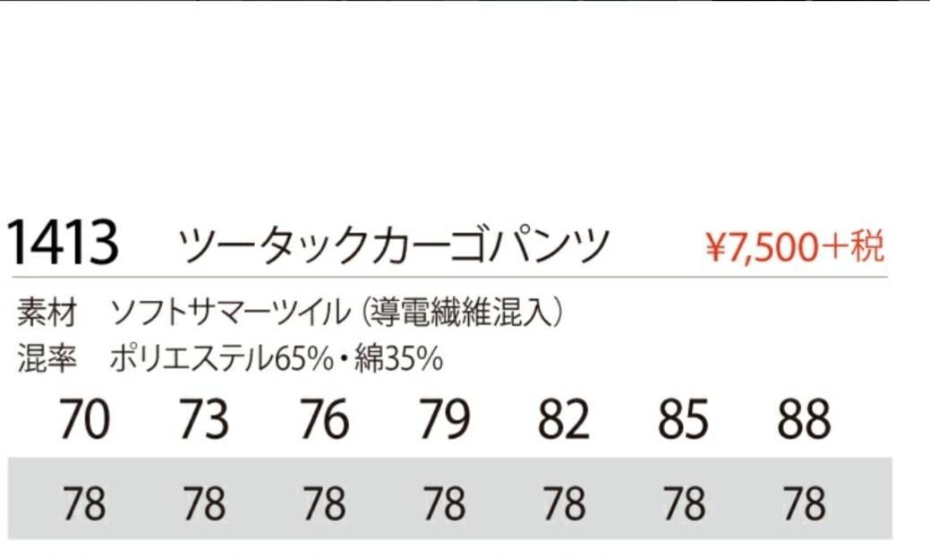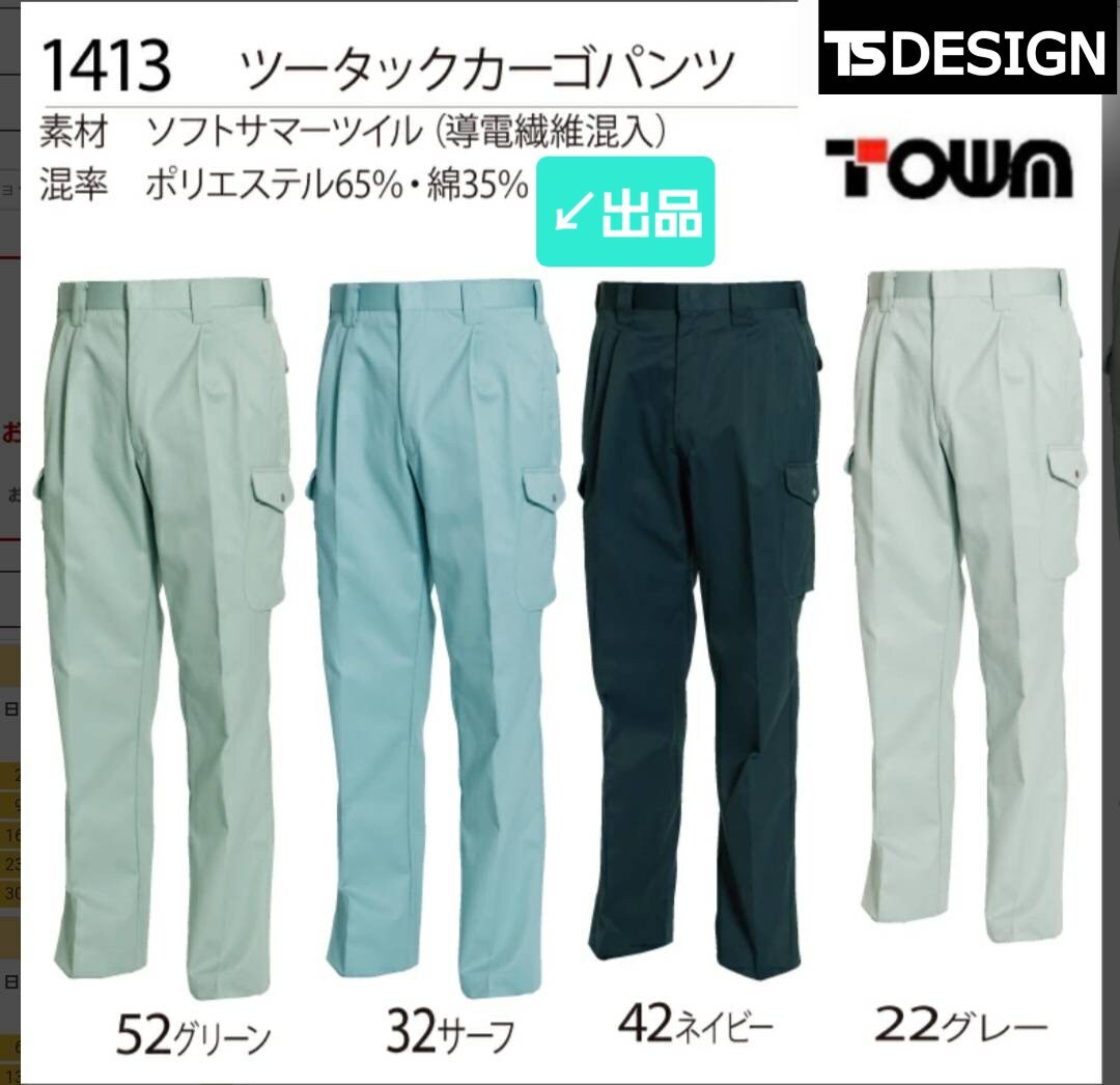 3414 藤和|TSDESIGN|1413|ツータックカーゴパンツ|サーフ|W88㎝|秋冬|新品未使用|TSデザイン|帯電防止|形態安定|作業ズボン|カーゴズボン
