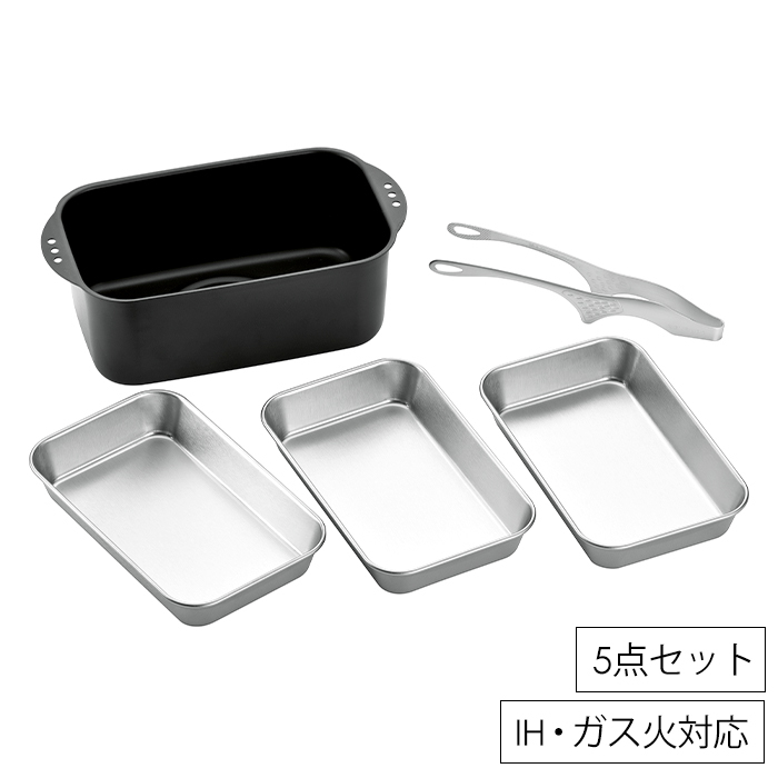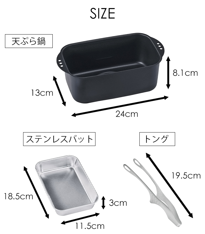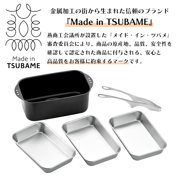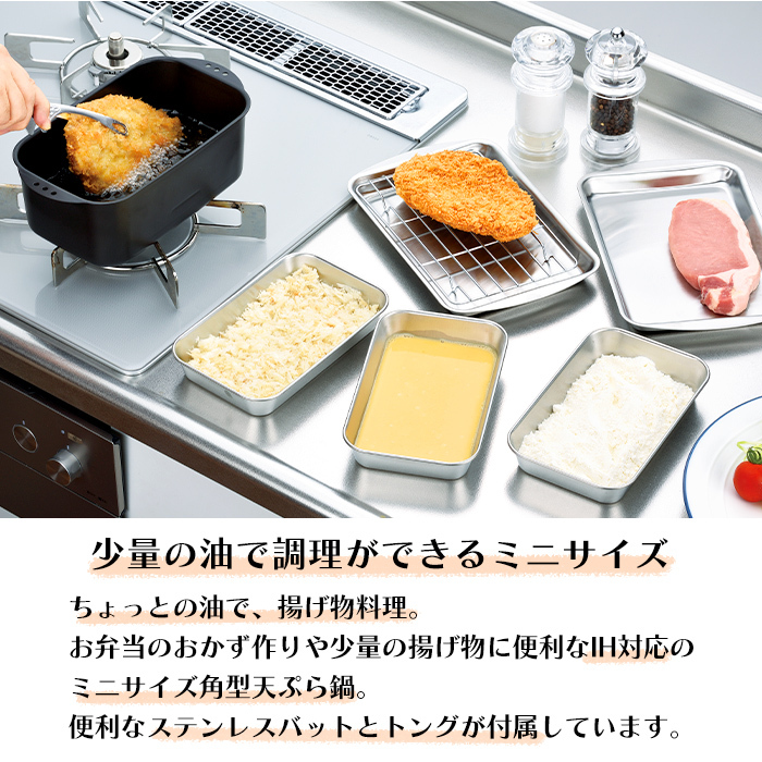 天ぷら鍋 ミニ 角型 バット 3枚セット トング付き ガス火 IH対応 日本製 燕三条 MHRSK-0047