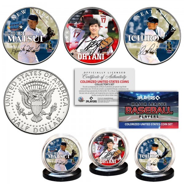 アメリカ 限定1/2ドル コイン 大谷翔平 イチロー 松井秀喜 ハーフダラー3枚セット 日本人スーパースター カラー USA 証明書&ホルダー付