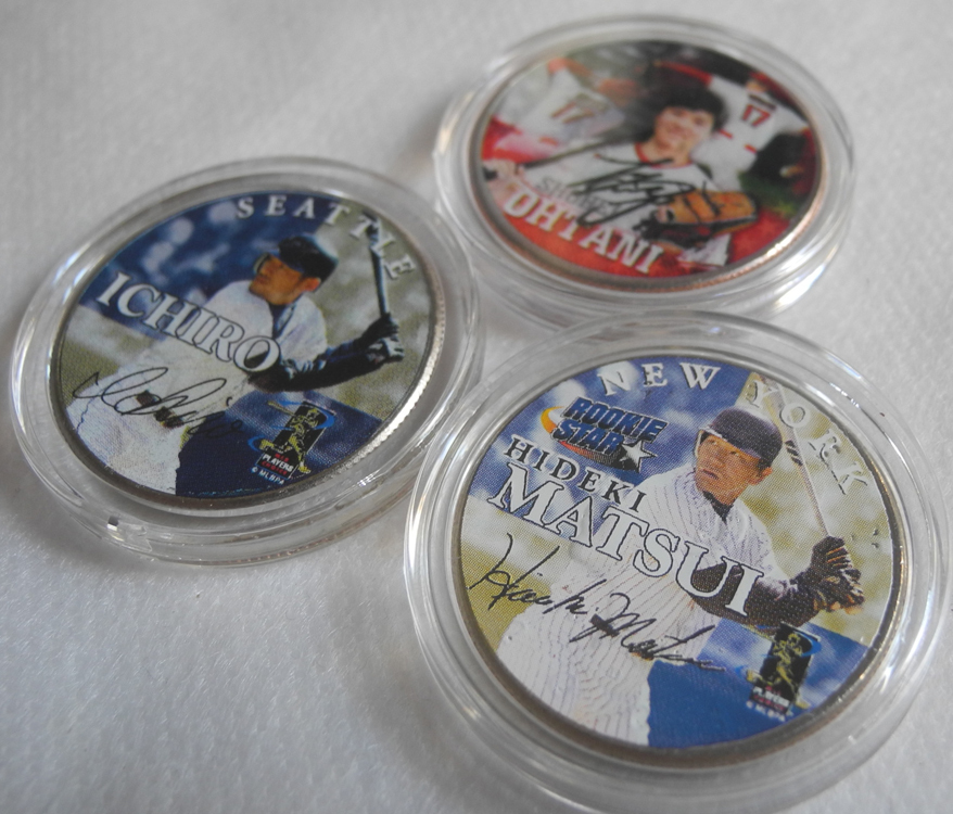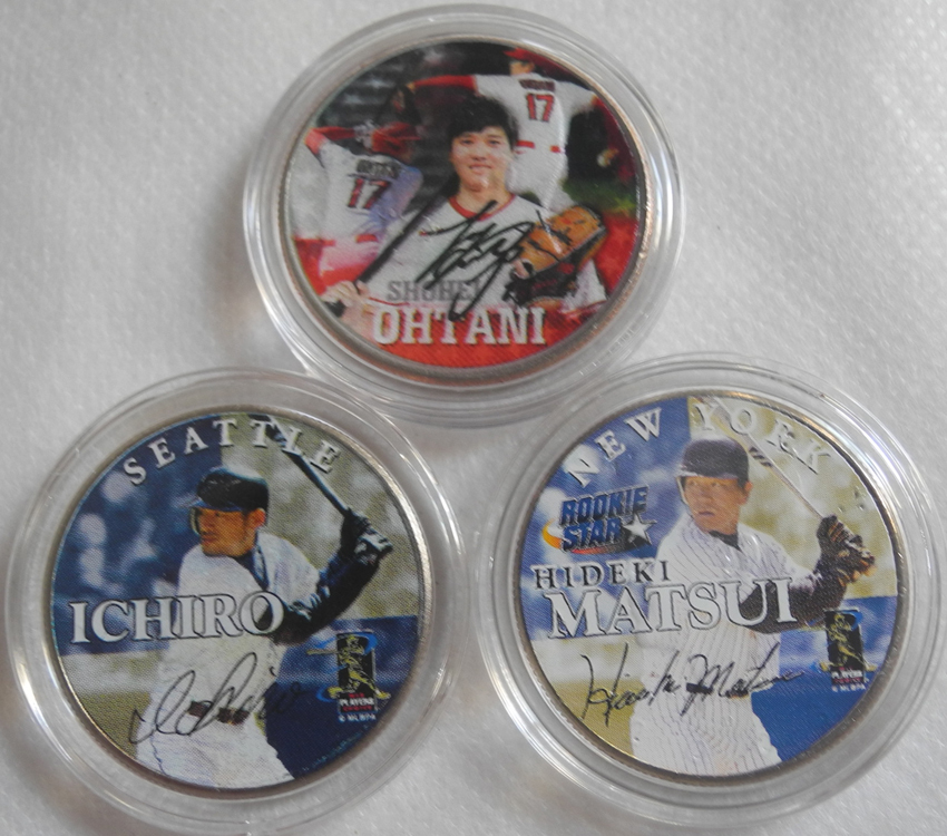アメリカの限定ハーフダラー、大谷翔平、イチロー、松井秀喜を合わせた3枚セットです。日本人メジャーリーガースーパースターを記念したものです。