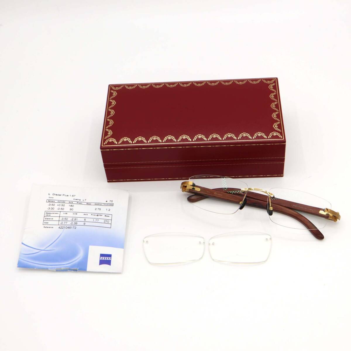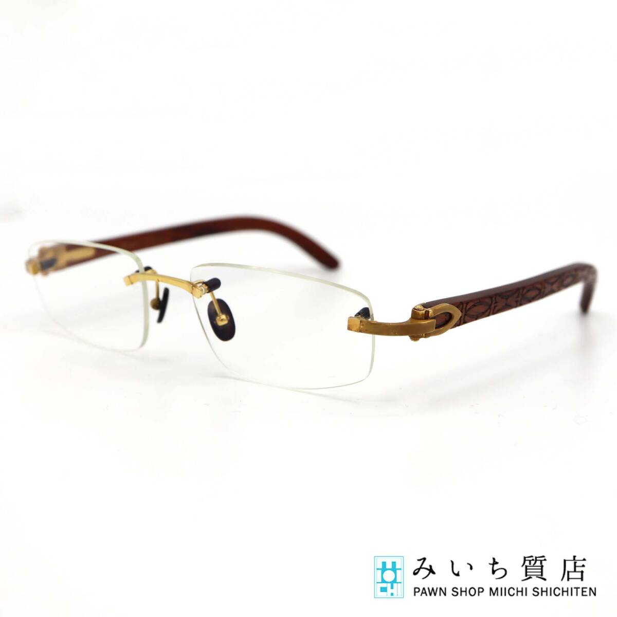 | カルティエの眼鏡です。Bランク:レンズやテンプルに傷が見受けられます。テンプルに緩みが見受けられます。度は入っておりますが、度数は分かりかねます。 |