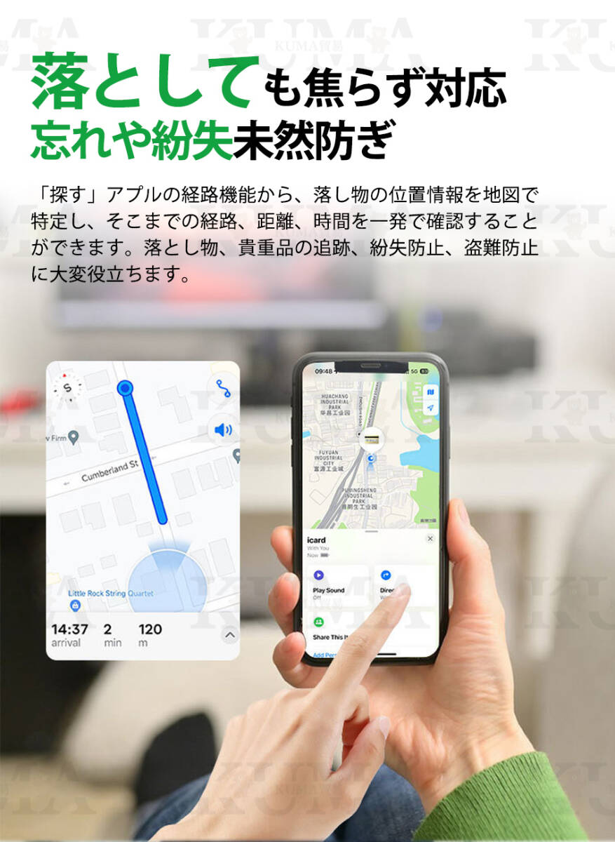 【「探す」App連動>>iPhoneですぐ見つかる】ダウンロード不要、「探す」Appとのシームレスな連携で、iPhone、iPad、Macデバイスから簡単に落とし物の位置を特定。Appの煩わしいインストールとはおさらば!迷子になった大切な物も即時発見可能。ご注意:iOSのみ対応、Androidは対象外です。  <br>