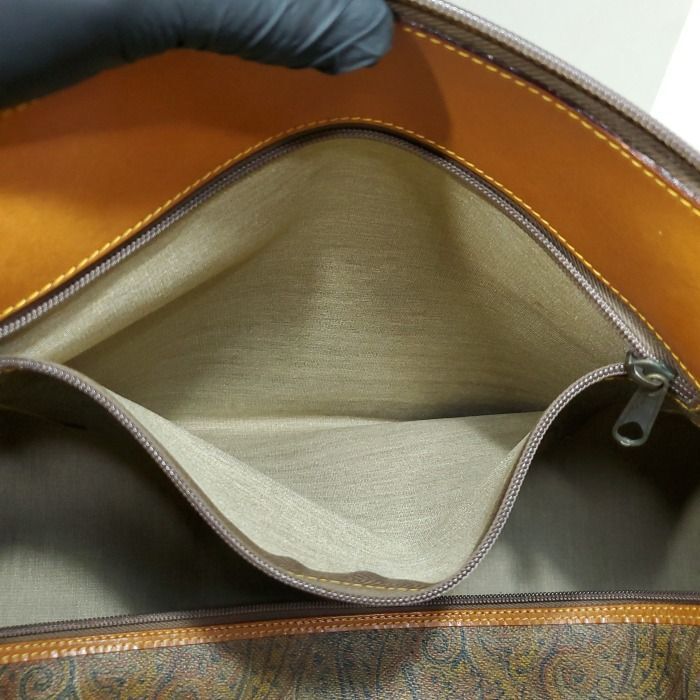 【備考】開口部に縫い糸の解れ、レザーの千切れあり パイピングに擦れ跡あり