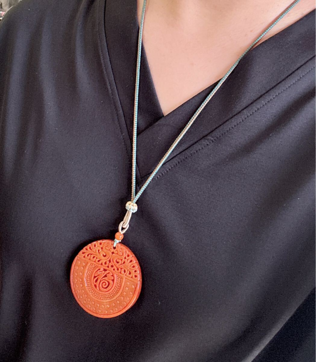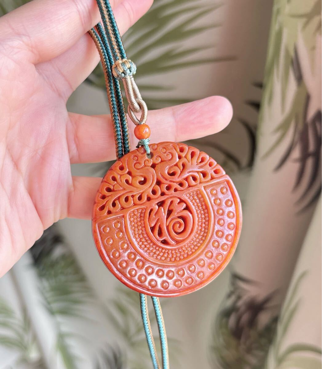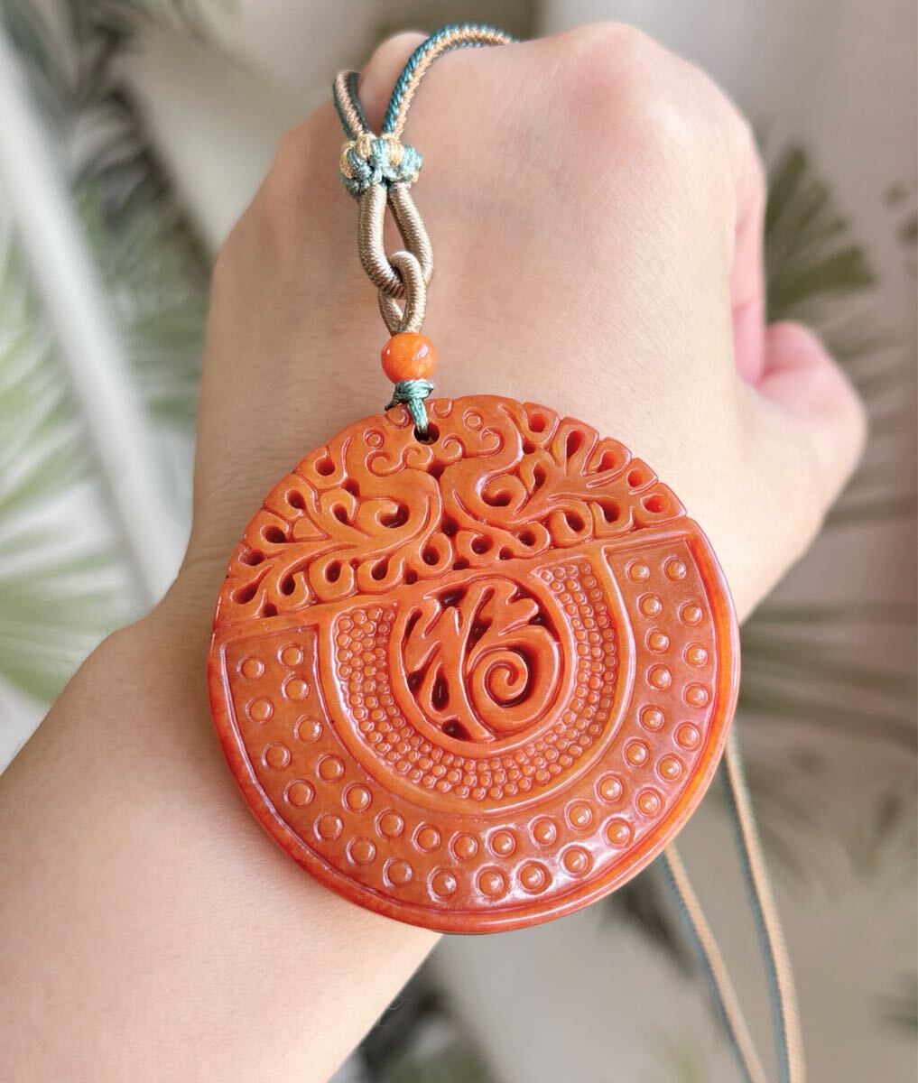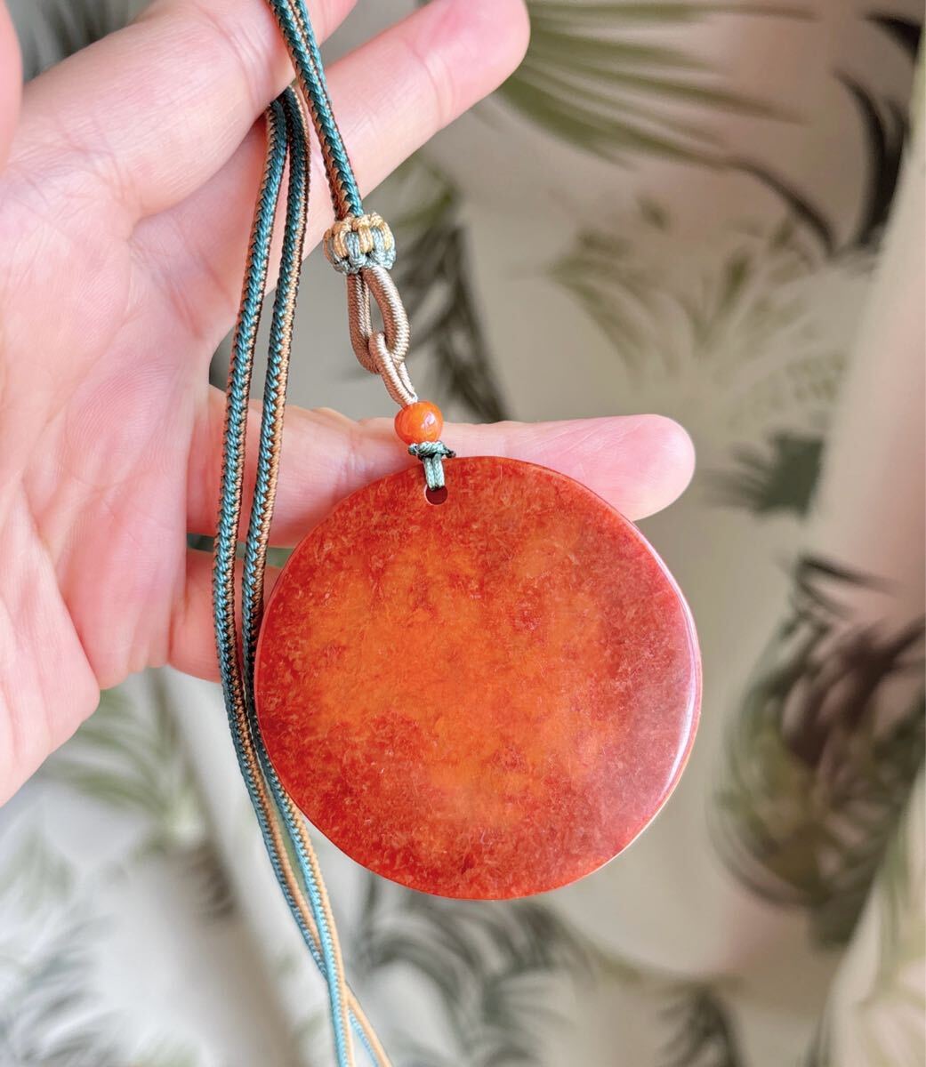 天然石 ミャンマーレッド本翡翠(A)福札のサイズ約:直径51mm*厚さ6mm;