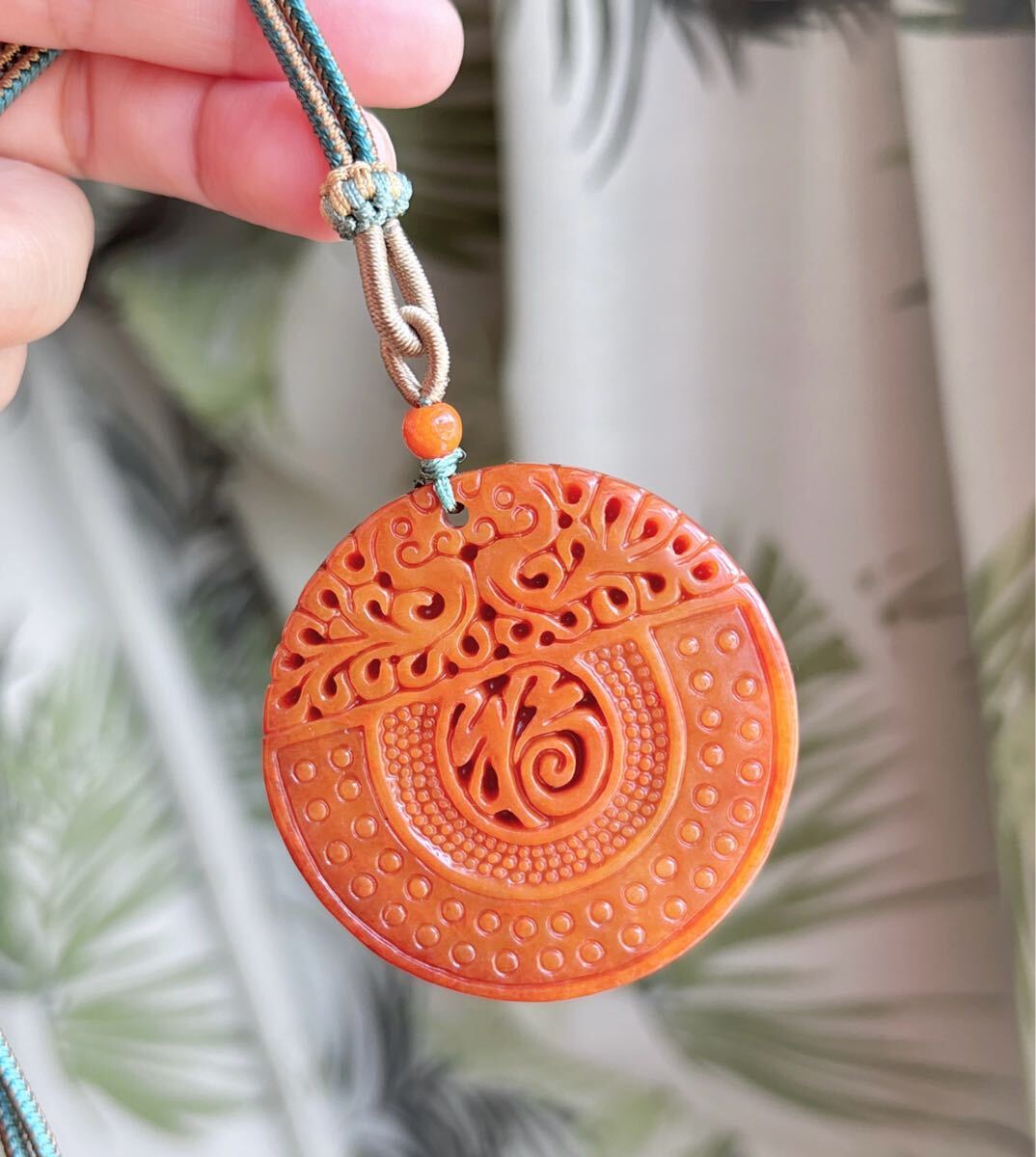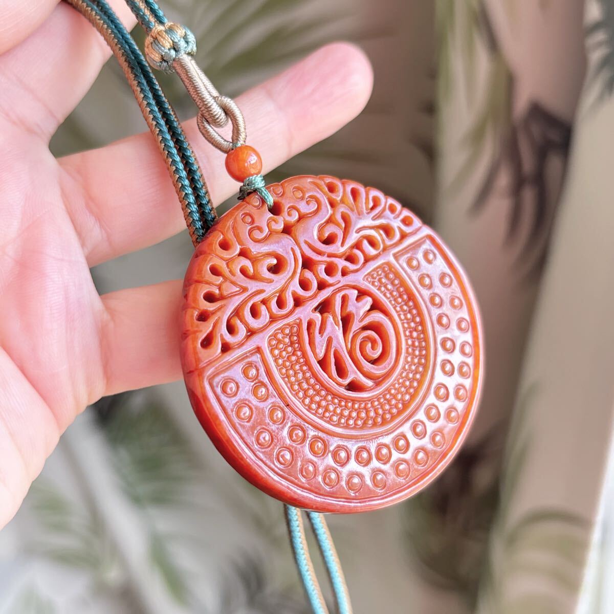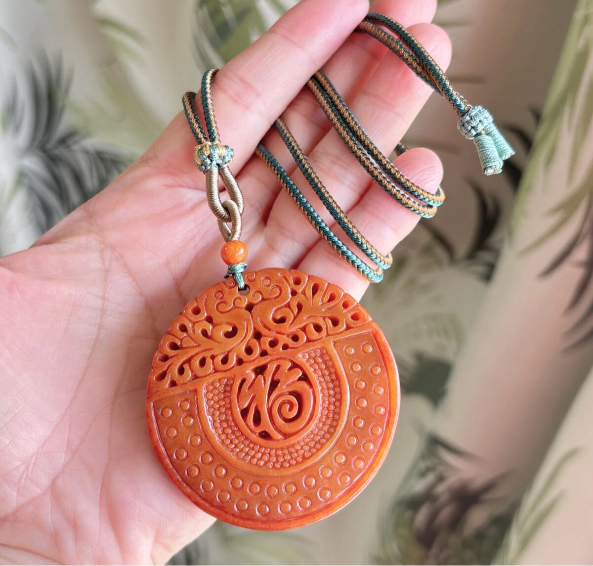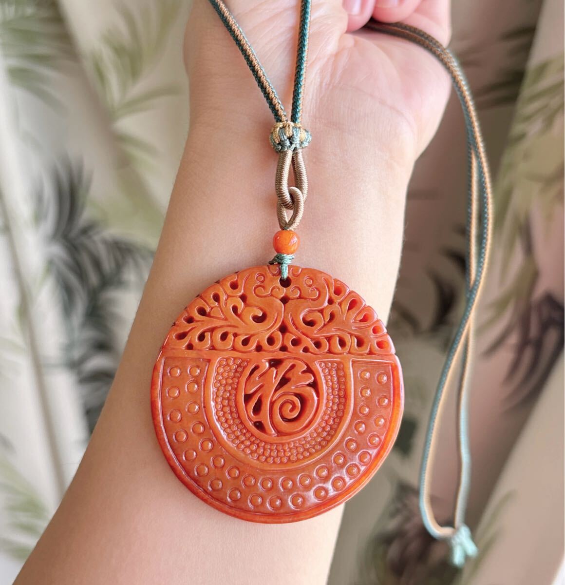 天然石 ミャンマーレッド本翡翠(A)福札のサイズ約:直径51mm*厚さ6mm;