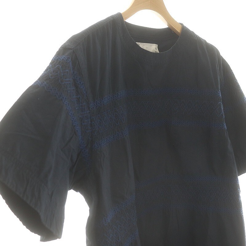 サカイ sacai 刺繍サイドジッププルオーバーシャツトップス ブラウス チュニック 3 ネイビー ブルー 18-01570 /DO ■OS ■AD レディース