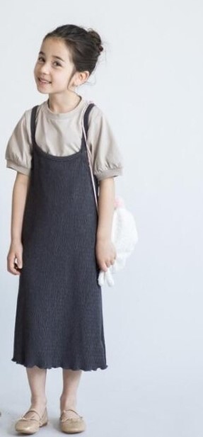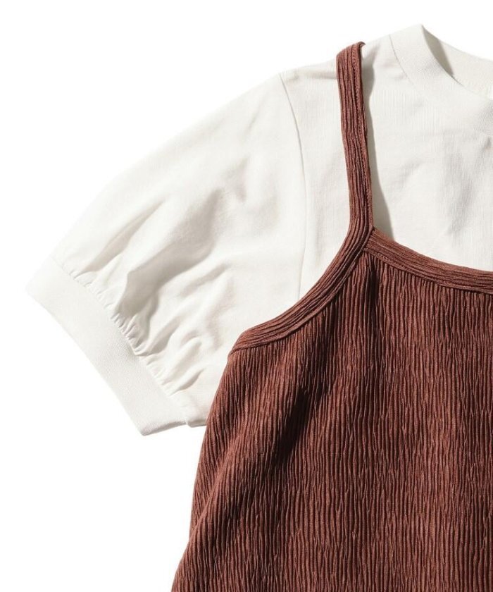 細かな楊柳プリーツの表情とメロー仕上げが愛らしいキャミワンピに、Tシャツをセットでご用意しました♪