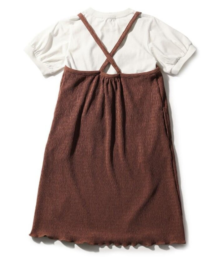 新品 THE SHOP TK(Kids)【リンクコーデ/2点セット】プリーツワンピ×TシャツSET キャメル 13(130cm) 定価4389円
