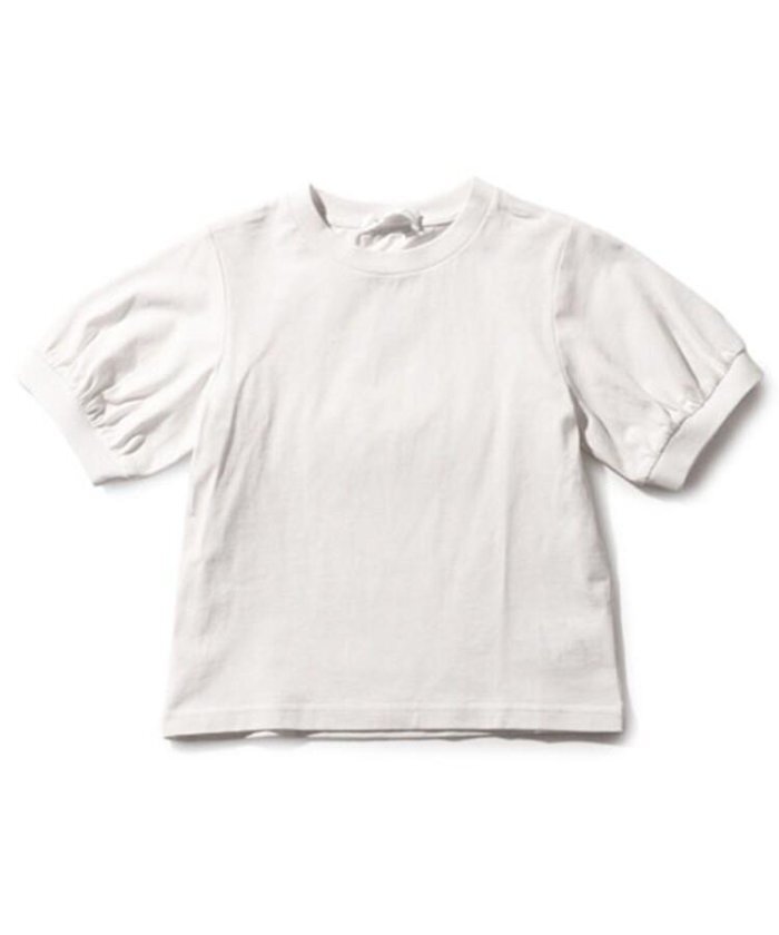 シンプルなTシャツはパフスリーブがさりげなくキュートなアクセントに。