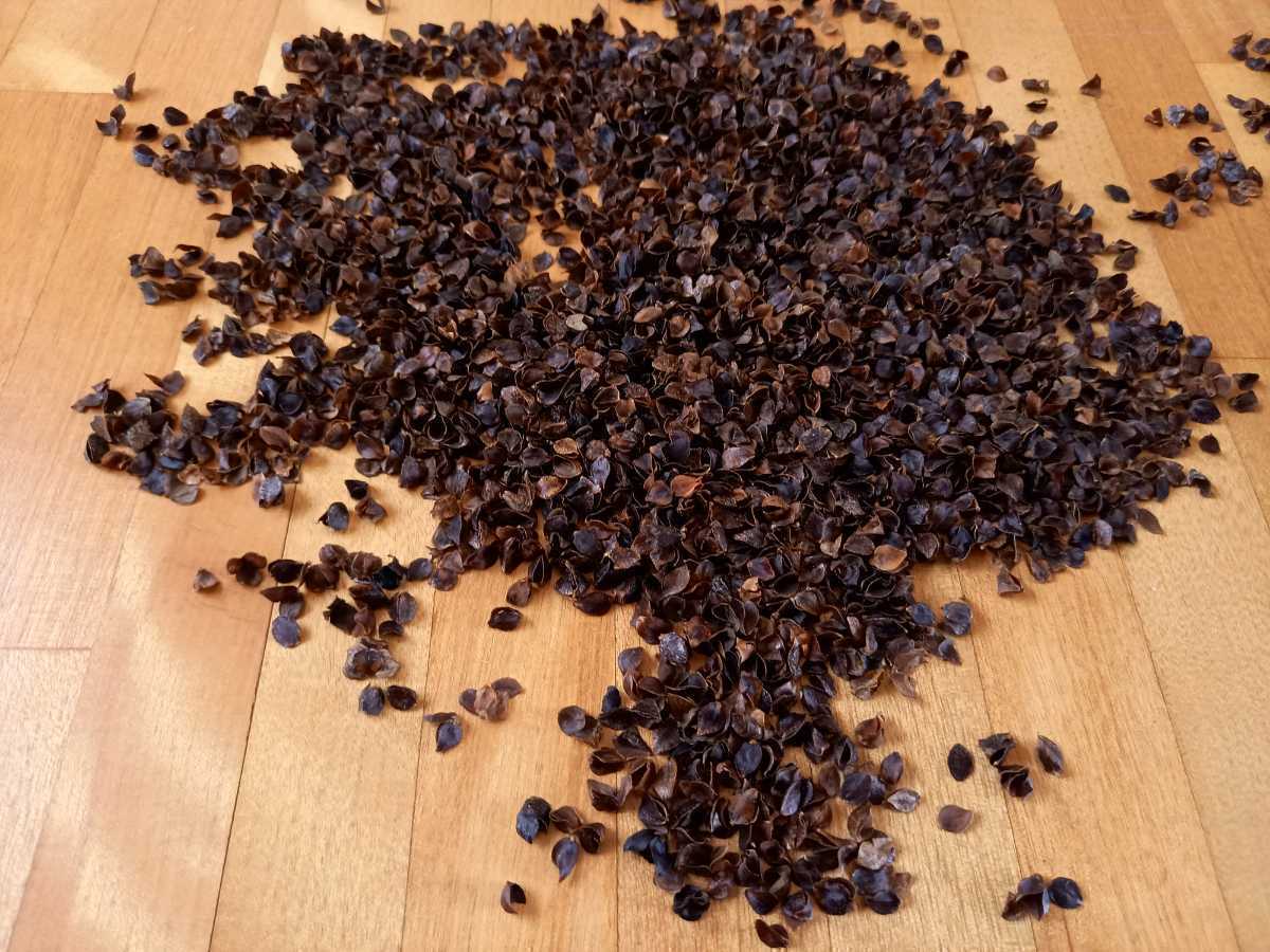 そば枕の中の虫(そば虫)の発生の原因はそば粉に含まれるたんぱく質です。そば虫はこのそば粉をエサとして枕に住み付きます。従来のそば殻は制作行程が2行程しかなく、このそば粉を取り除く事が出来ませんでした。