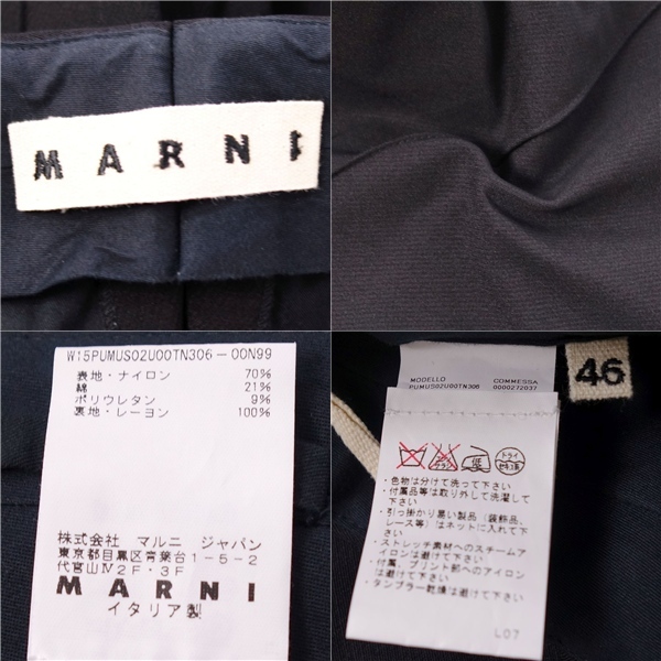 | 極美品 マルニ MARNI パンツ ロングパンツ ナイロン コットン 無地 ボトムス メンズ イタリア製 46 ブラック |