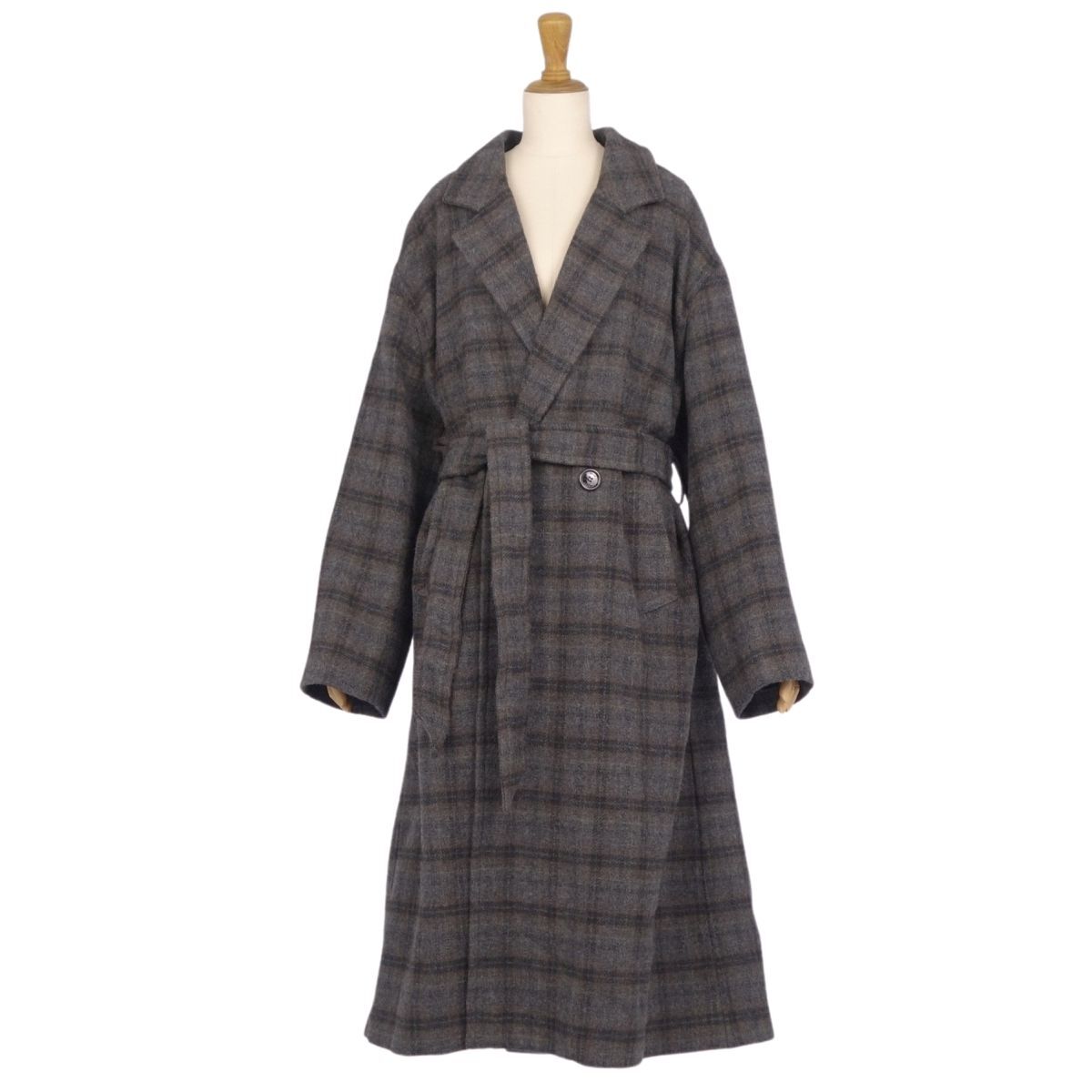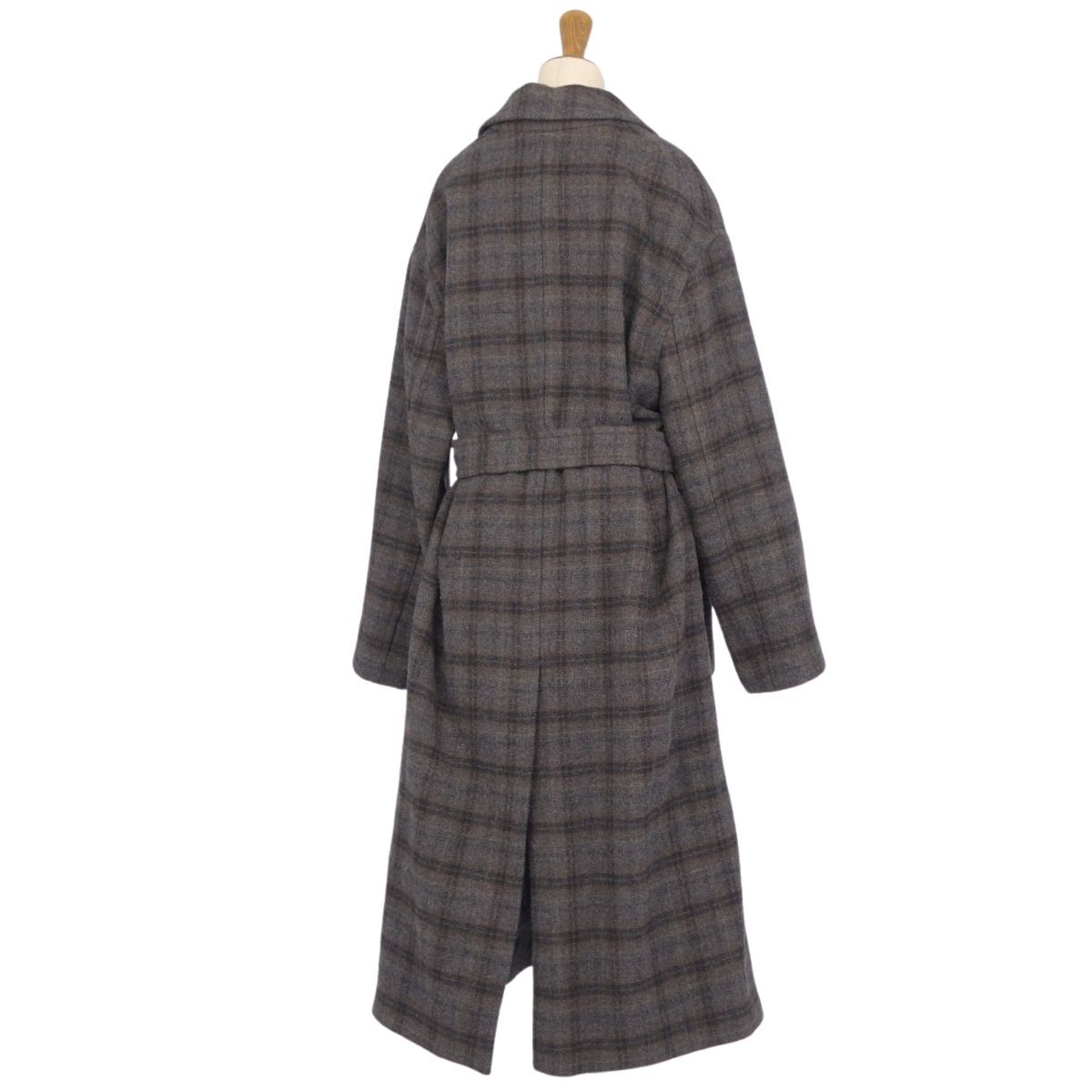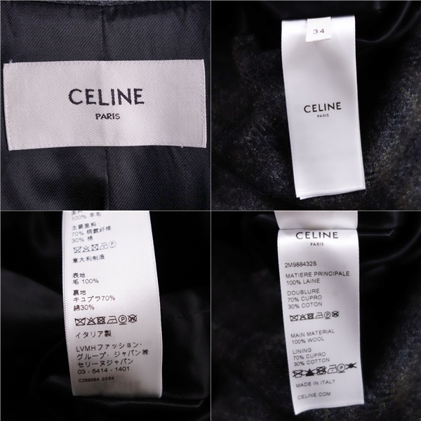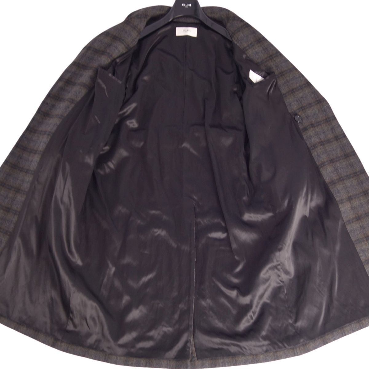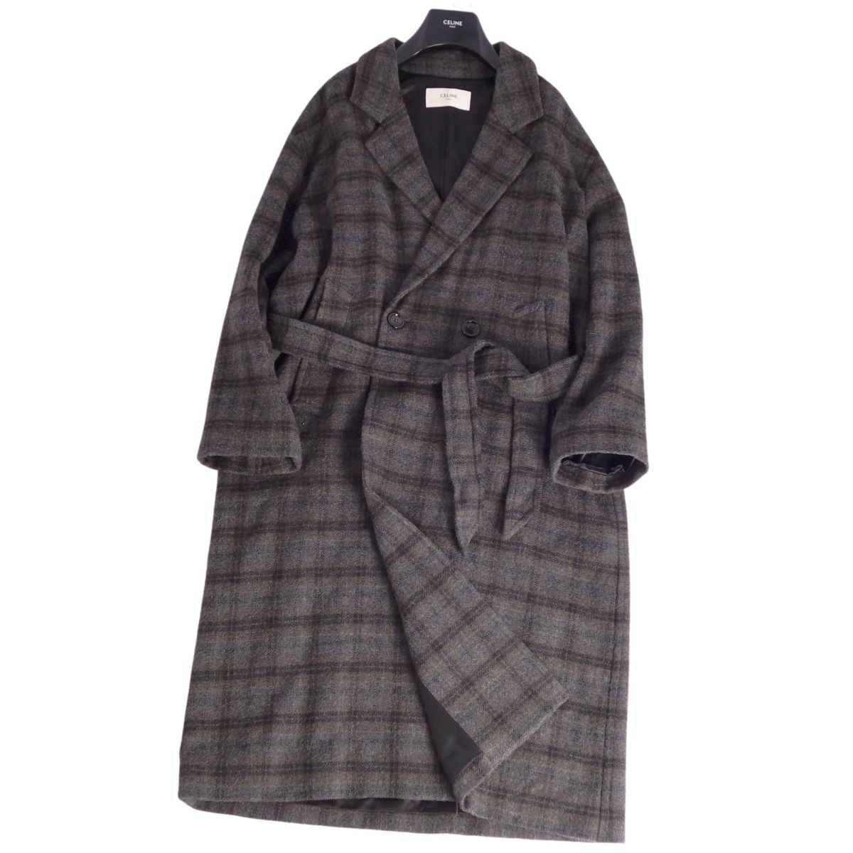 | 極美品 セリーヌ CELINE ロングコート ダブルブレスト チェック ウール ツイード アウター レディース 34(S相当) グレー |