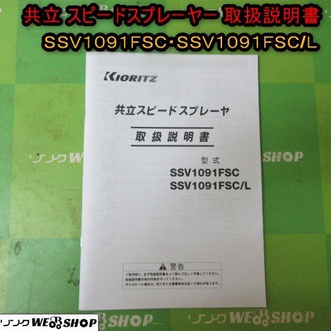 青森 七戸店 共立 スピードスプレーヤー 取扱説明書 SSVシリーズ 取説 トリセツ 説明書 東北 中古品