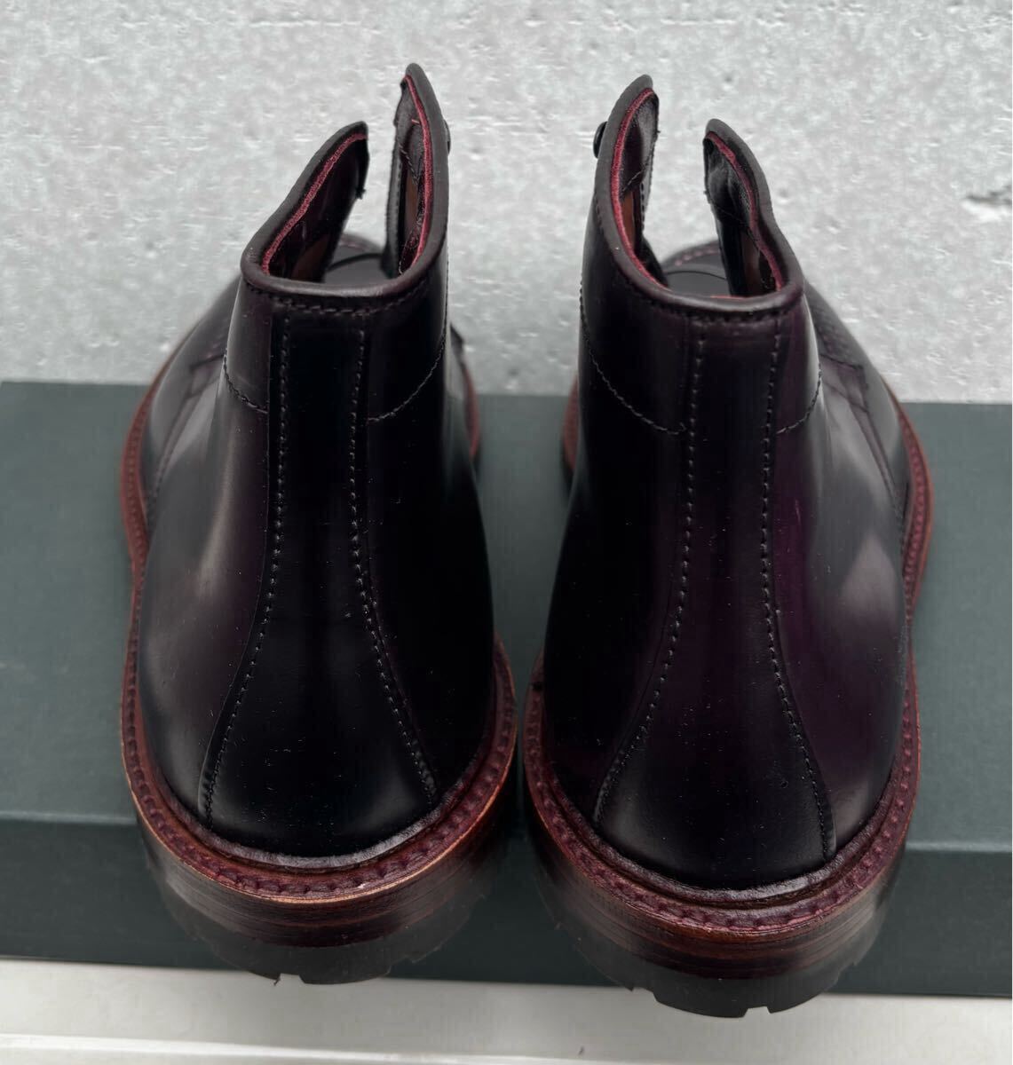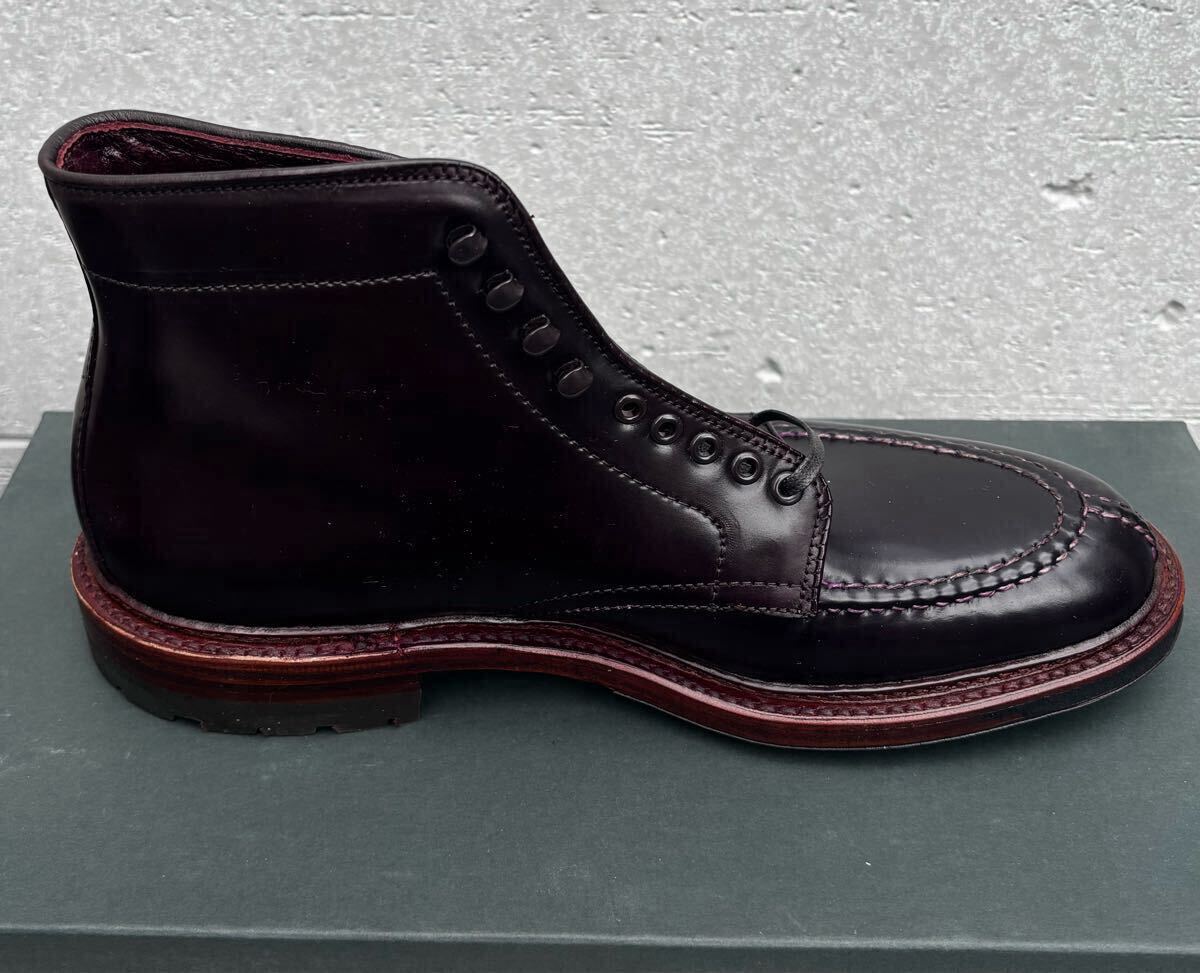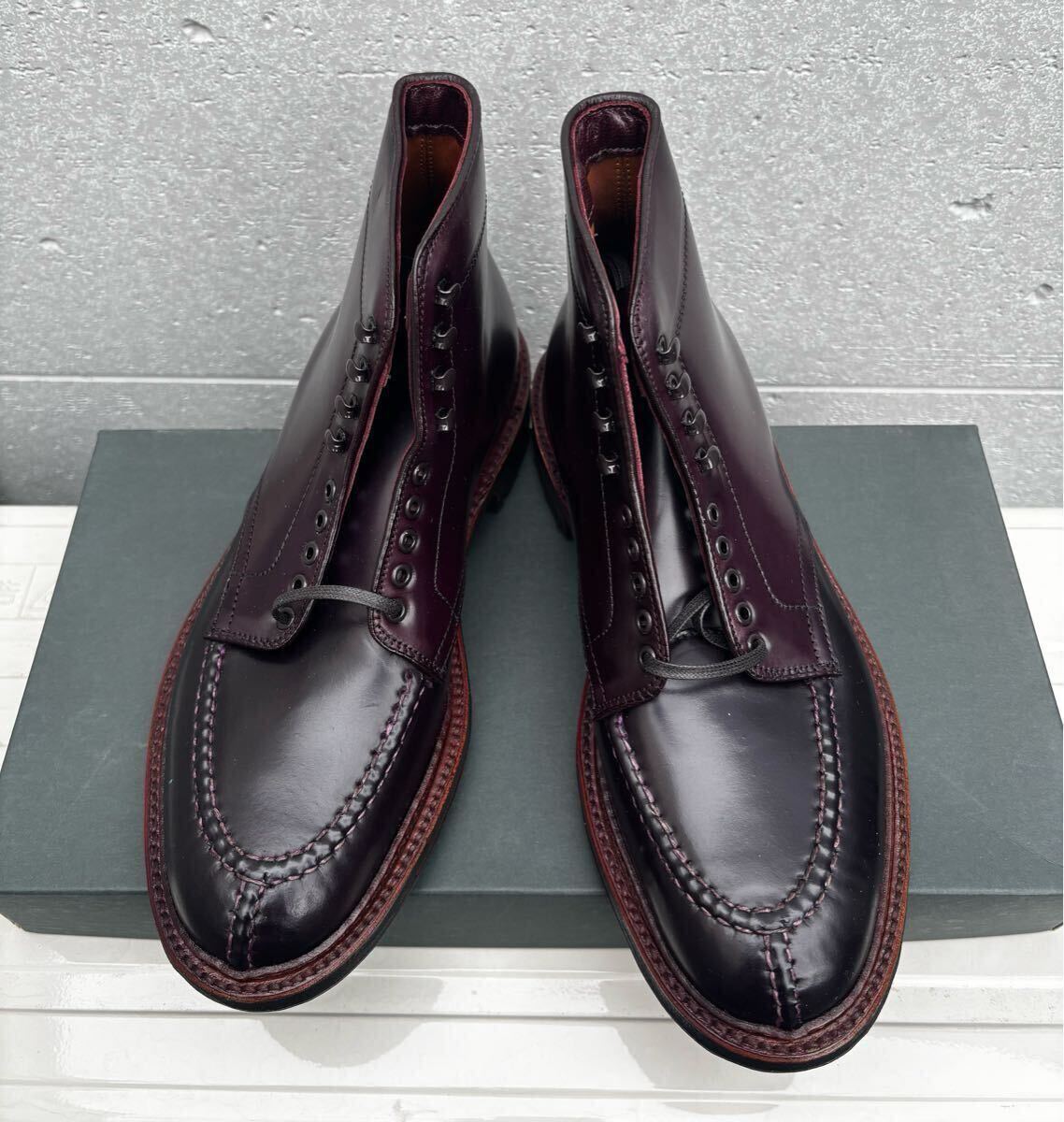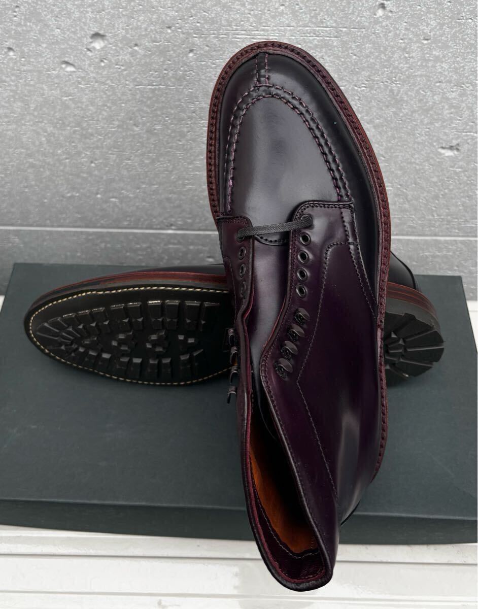 自身で着用するために購入しましたが少し小さいので出品します。オールデンのコードバンのタンカーブーツ、バリーラストの6.5Eです。類似モデルの国内定価は227,700円です。