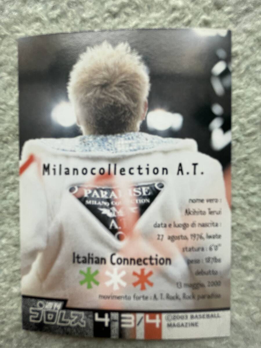 プロレスラー・ミラノコレクションATの未使用トレーディング・カードです(縦9cm・横6.5cm)。