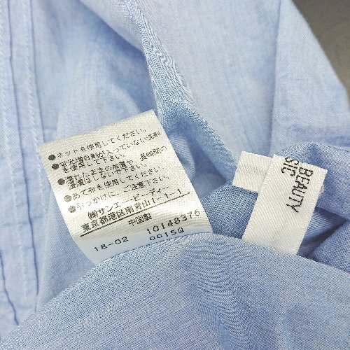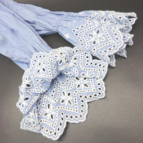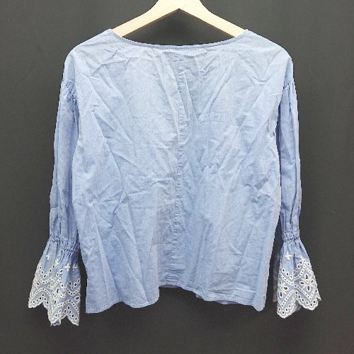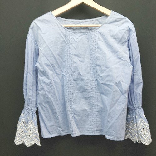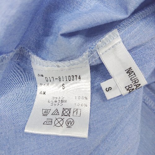 ◇ NATURAL BEAUTY BASIC クルーネック メッシュカフス 大人カジュアル 長袖 Tシャツ サイズS スカイブルー レディース E