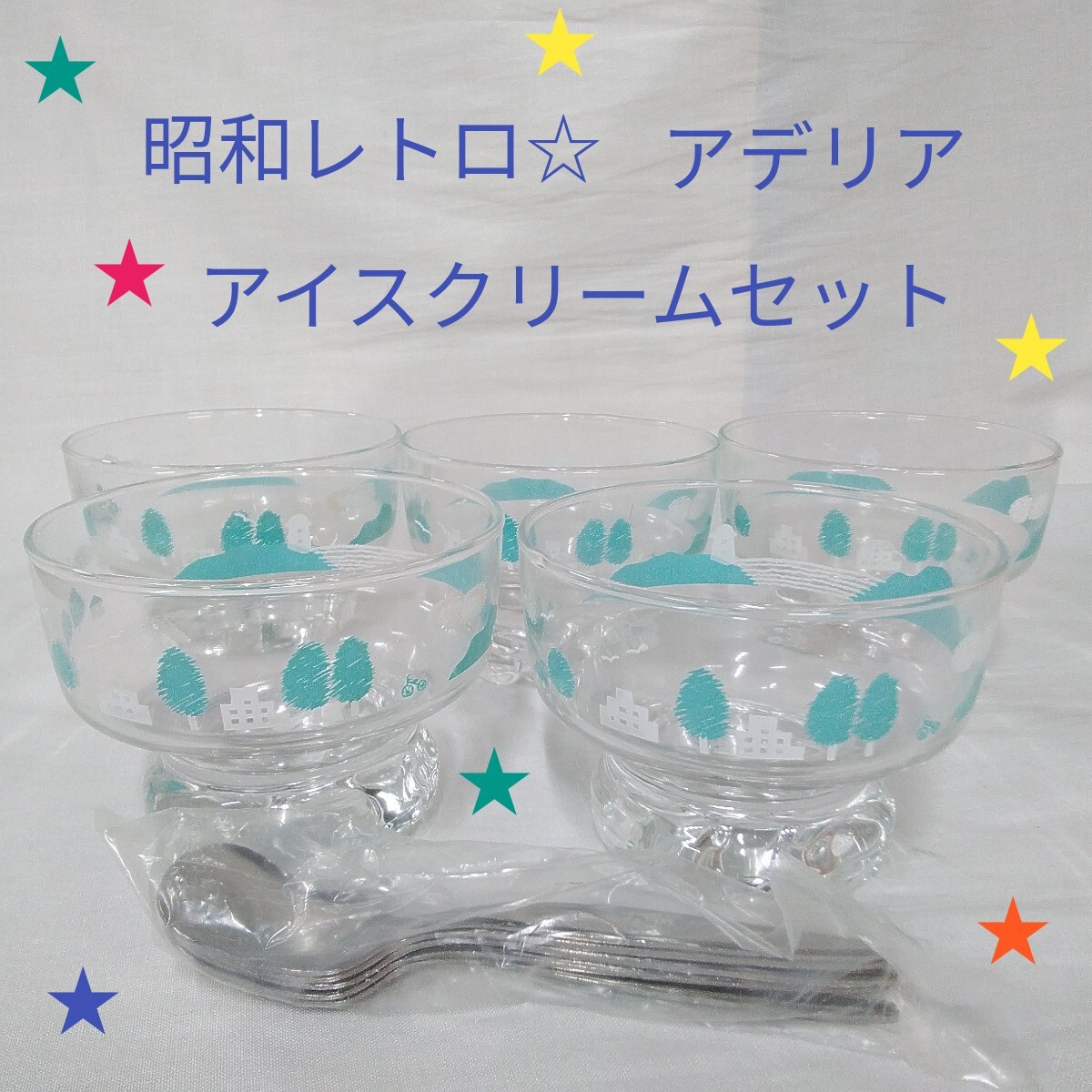 g_t G190 【未使用品】昭和レトロ アデリア アイスクリーム セット ルアーブルーサンデー 石塚硝子株式会社製 レトロポップ